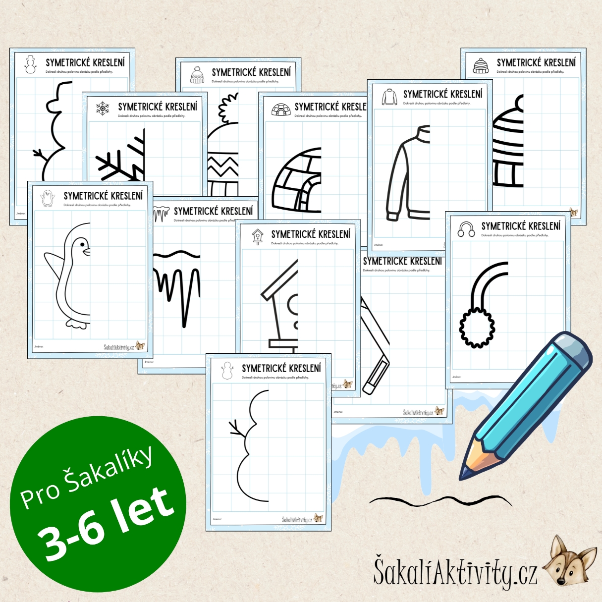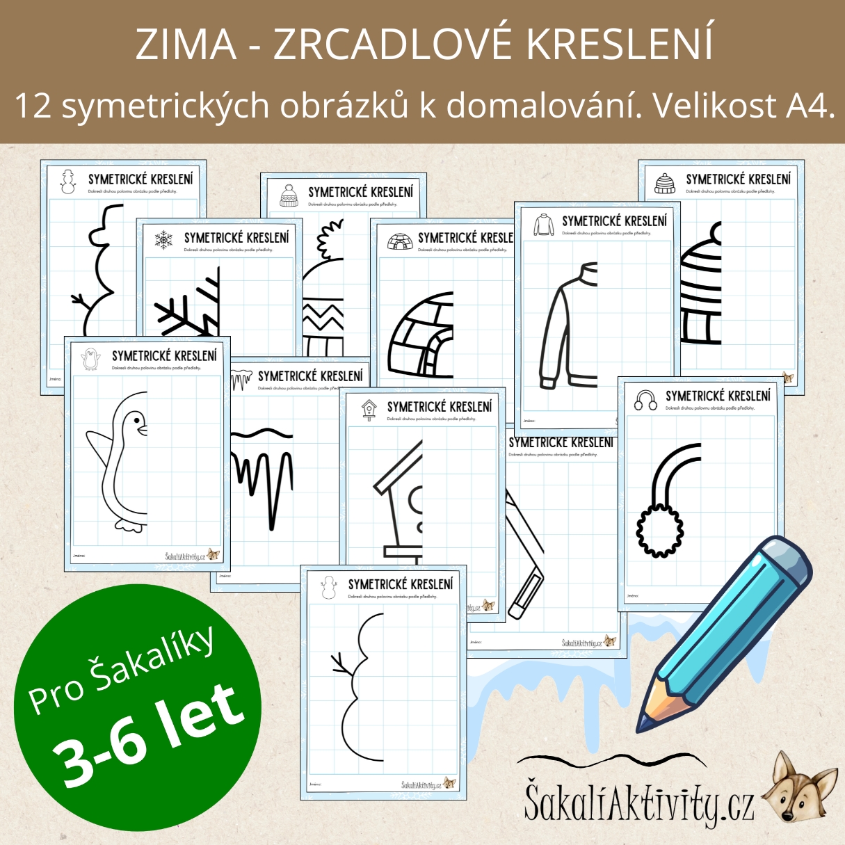 📄 Soubor obsahuje 12 symetrických obrázků, celkový rozsah materiálu je 14 stran. Aktivita je vhodná pro mateřské školy, první stupeň ZŠ, školní družiny i domácí vzdělávání a snadno se začlení do zimního tematického bloku.