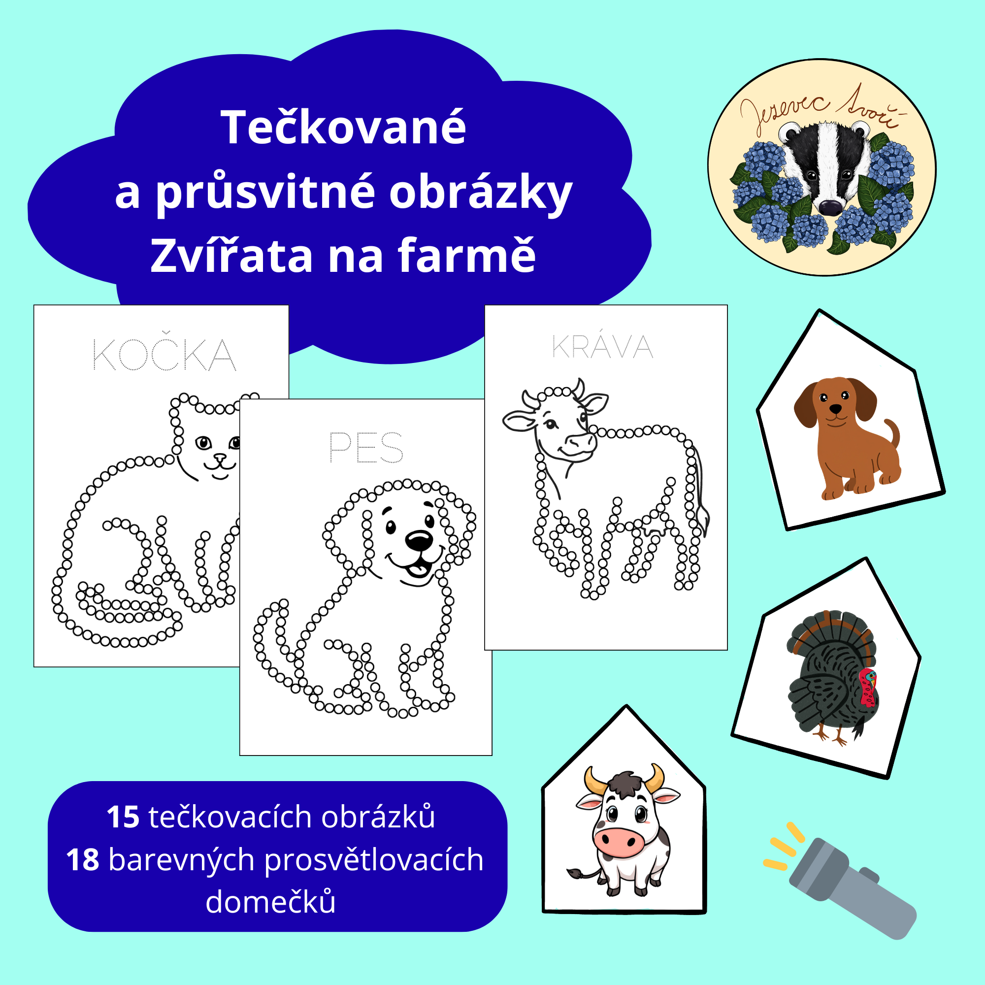 - 15 tečkovacích obrázků zvířat z farmy