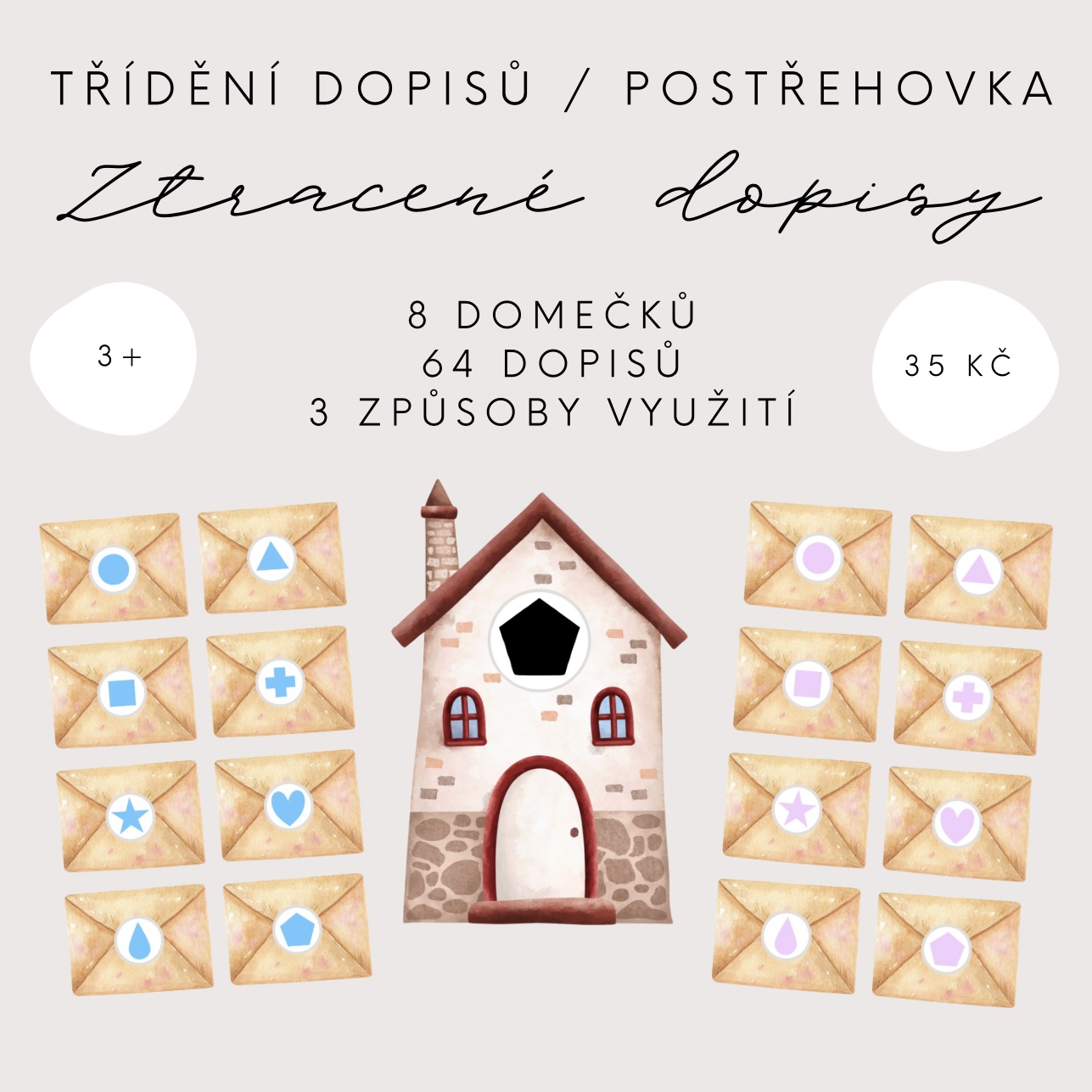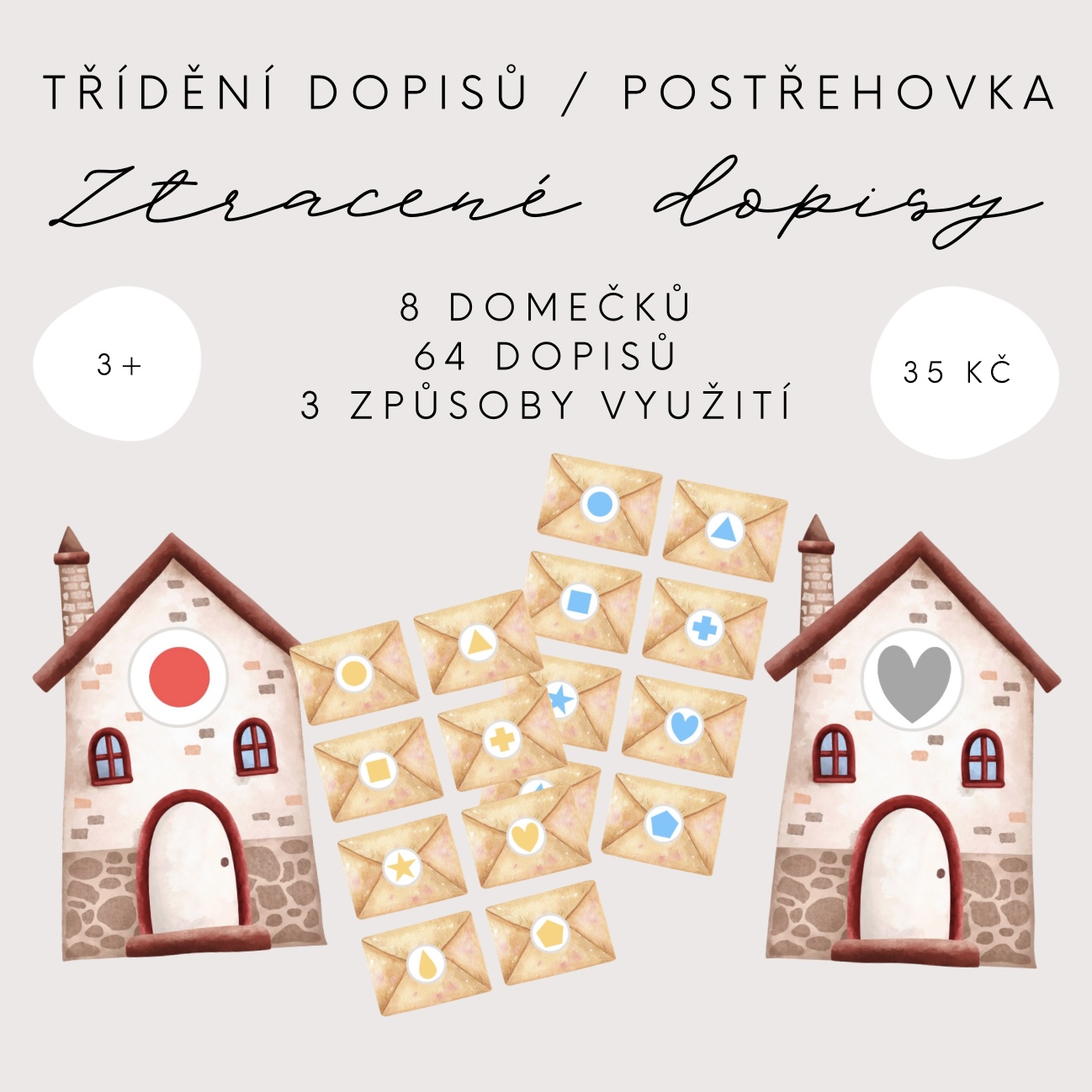 Představujeme Vám zábavnou aktivitu, při které si děti mohou zahrát na pošťáky a doručovat dopisy do správných domečků. Hra je zaměřena na třídění podle barev a geometrických tvarů a nabízí hned několik možností využití.