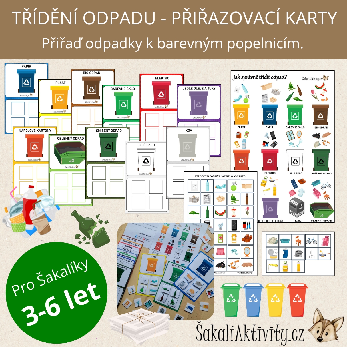 Hledáte zábavnou a vzdělávací PDF aktivitu pro děti? Tato sada na třídění odpadu je skvělým způsobem, jak děti seznámit s ekologií a prevencí odpadů. Díky barevným kartám a obrázkům děti pochopí, kam správně patří papír, plast, sklo či bioodpad. Materiál je připraven tak, aby byl vhodný i pro Montessori prostředí, podporuje samostatnou práci dětí a praktické učení.
