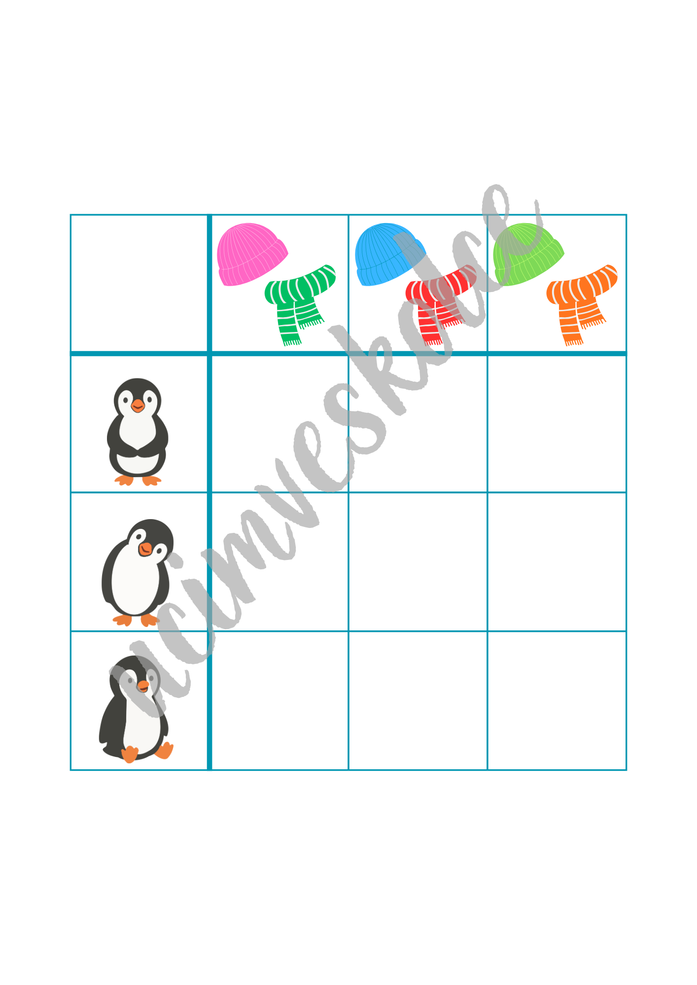 - v levém sloupci každé tabulky jsou obrázky různých tučňáků