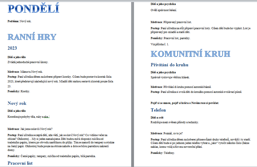 Je psána dle RVP PV z roku 2025, pro smíšenou třídu na 5 pracovních dní. Jedná se o vzdělávací materiál.