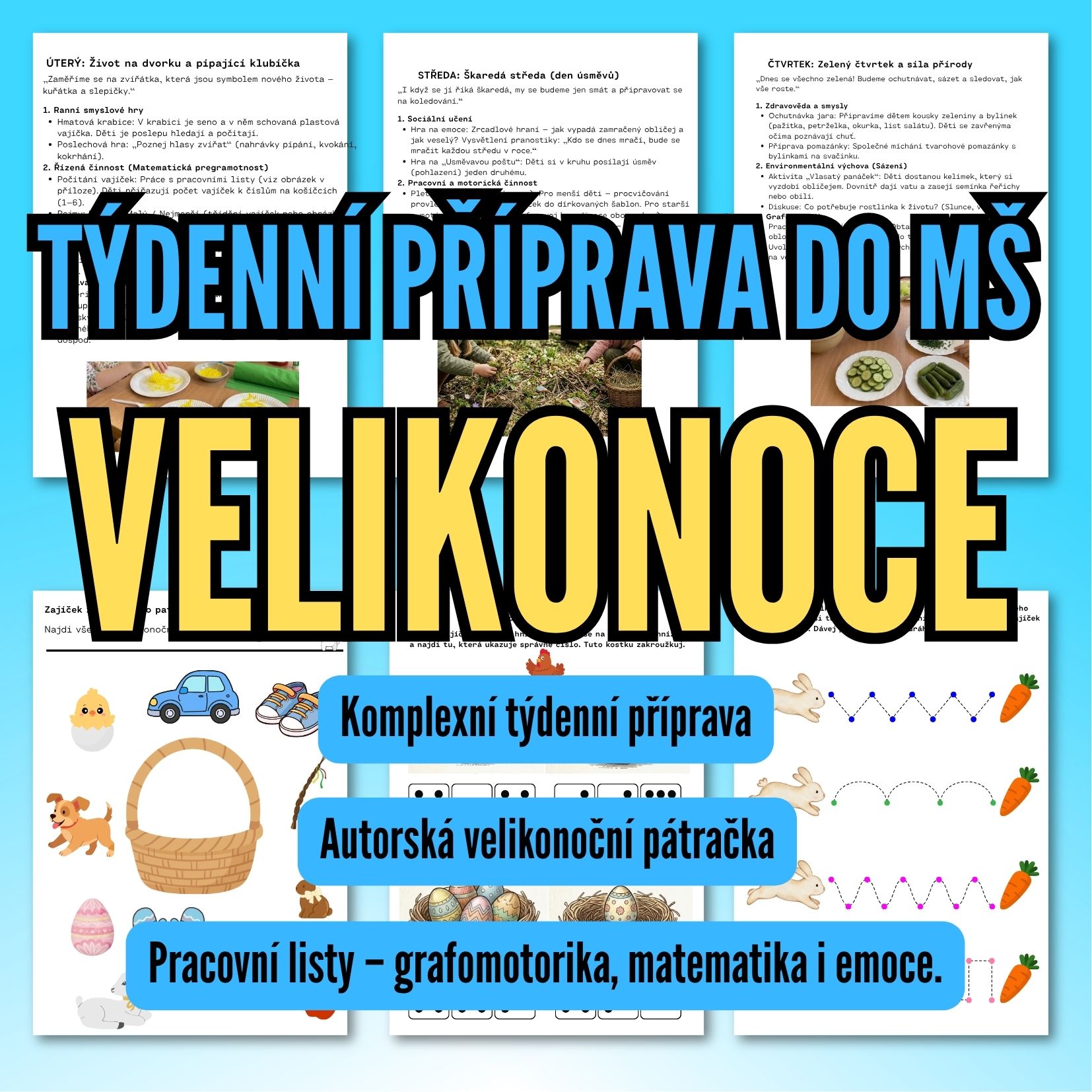 Hledáte ucelený, hravý a metodicky zpracovaný plán na velikonoční období? Tento soubor vám zajistí program na celý týden, od ranních her až po velké páteční finále.