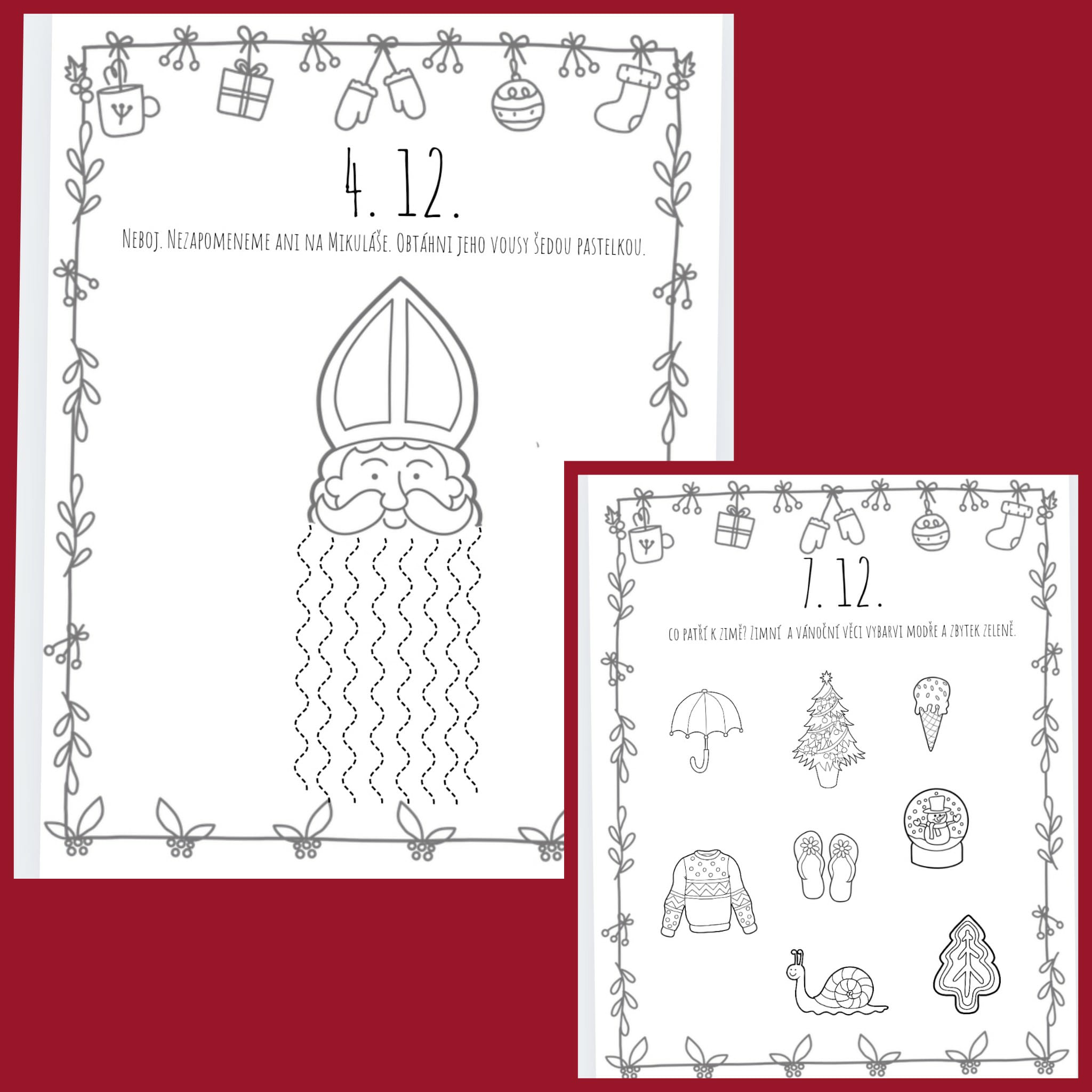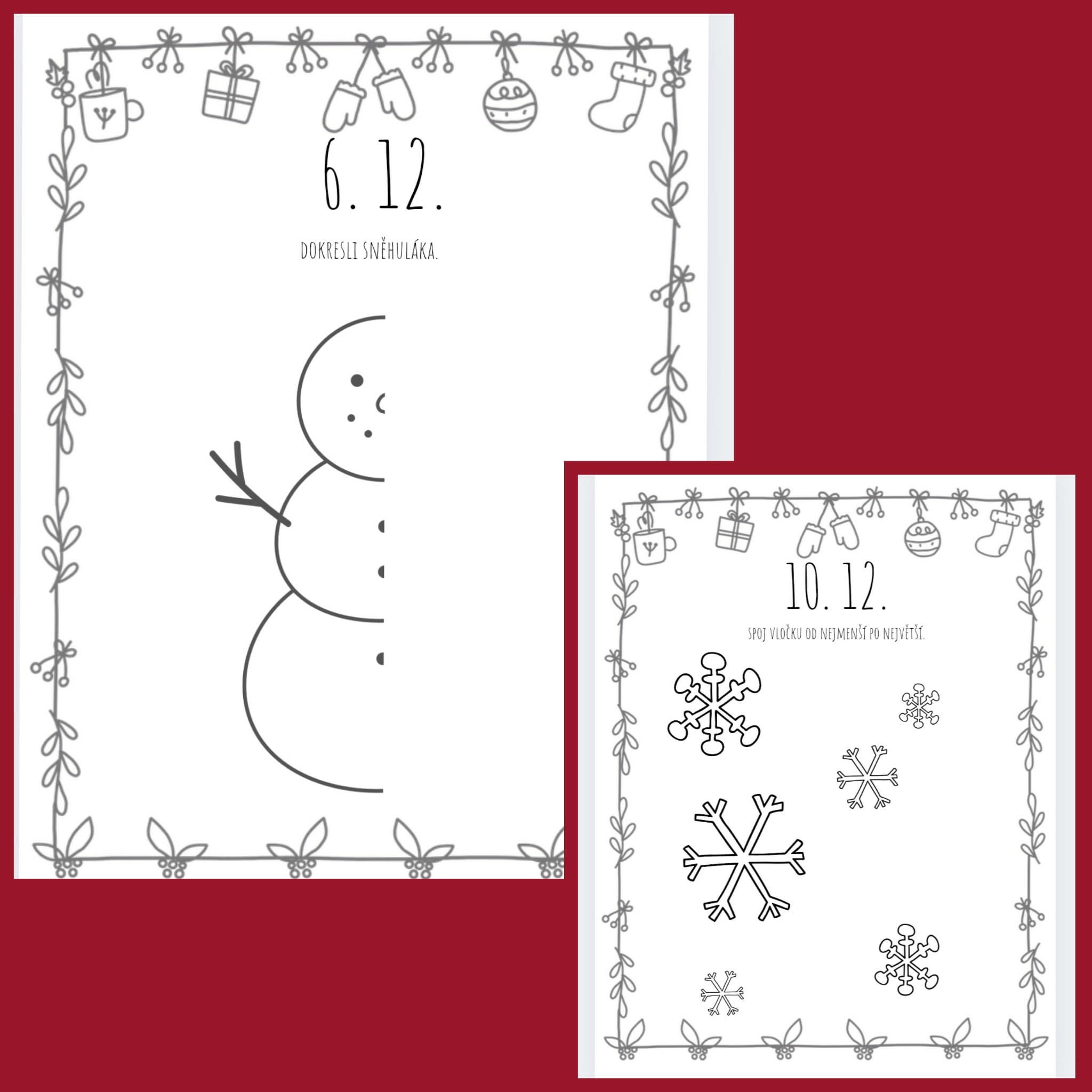 Tento adventní materiál obsahuje 24 jednoduchých, srozumitelných a věkově přiměřených úkolů určených pro děti předškolního věku (přibližně 3–6 let). Každý úkol je zpracován jako samostatná strana A4, kterou lze využít buď jednotlivě, nebo vložit do adventních kapsiček. Úkoly nejsou tematicky náročné a jsou navrženy tak, aby je děti byly schopné samostatně či s minimální dopomocí splnit.