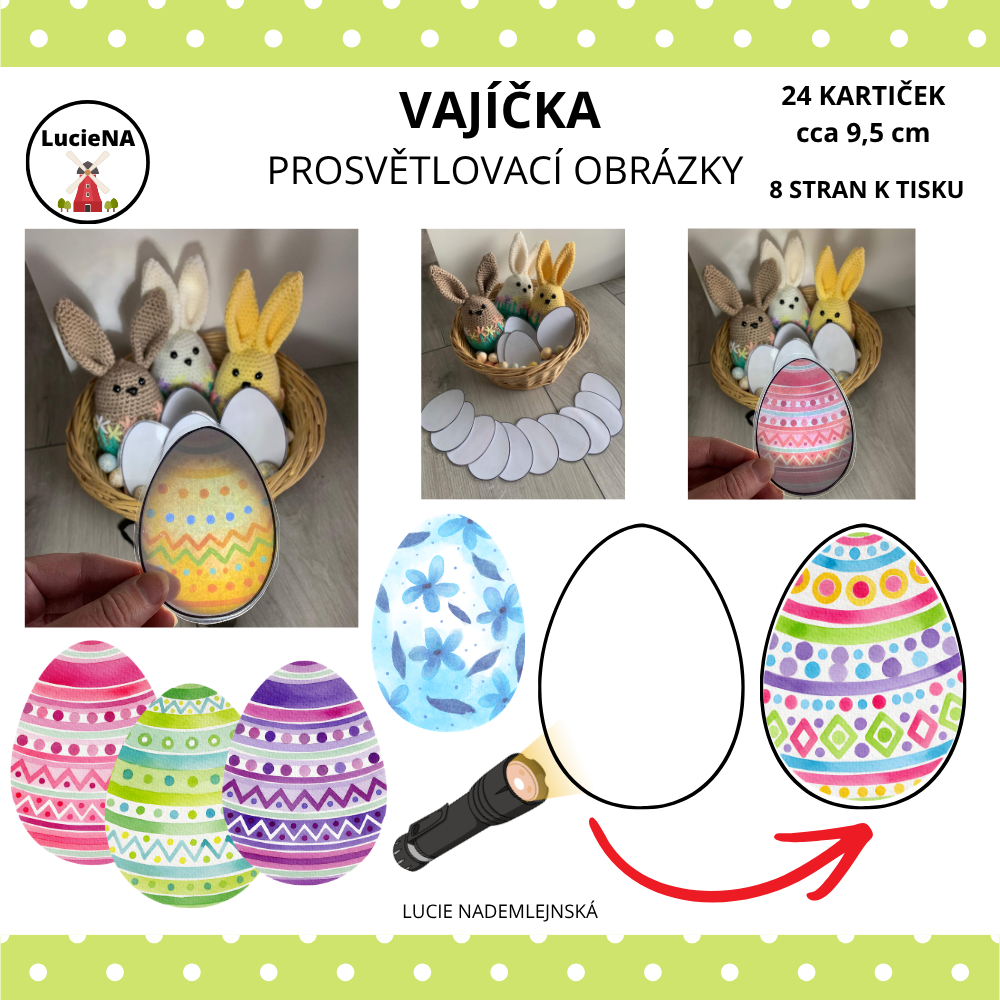 Barevný PDF soubor obsahuje 24 vajíček k prosvětlení.