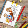 Omalovánky zachycují klidné a srozumitelné valentýnské scény, jako jsou děti s přáníčky a vzkazy, rodinné posezení, předávání dárků a květin i romantické valentýnské motivy. Vše je zpracováno v jednotném stylu s čistými černobílými liniemi, vhodnými pro děti různých věkových kategorií.