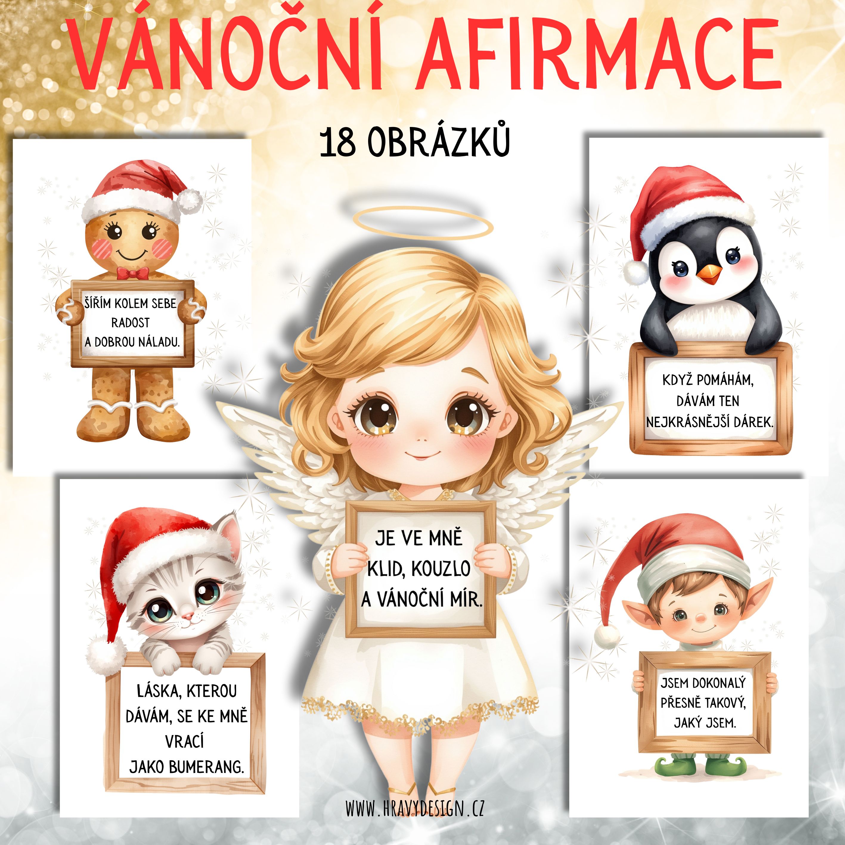 18 originálních ilustrací s vánočními afirmacemi (ve velikosti A4)