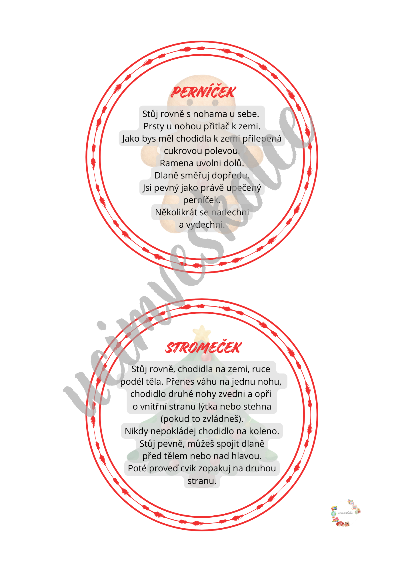 - obrázek znázorňující název cviku (např. perníček, věnec, vánočka atd.).