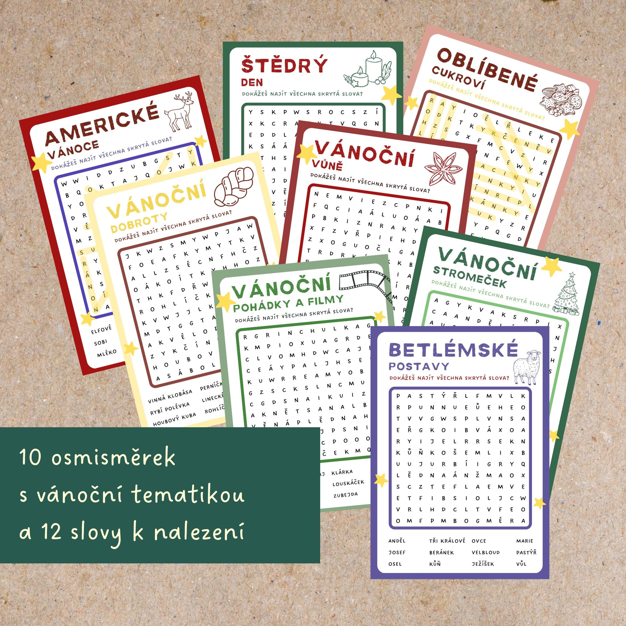 ⭐Sada obsahuje deset osmisměrek a jejich řešení tematicky laděných do Vánoc a celého adventního období. Každá z osmisměrek má jiné téma a za každou z nich následuje i arch se správným řešením pro rychlou kontrolu učitele.