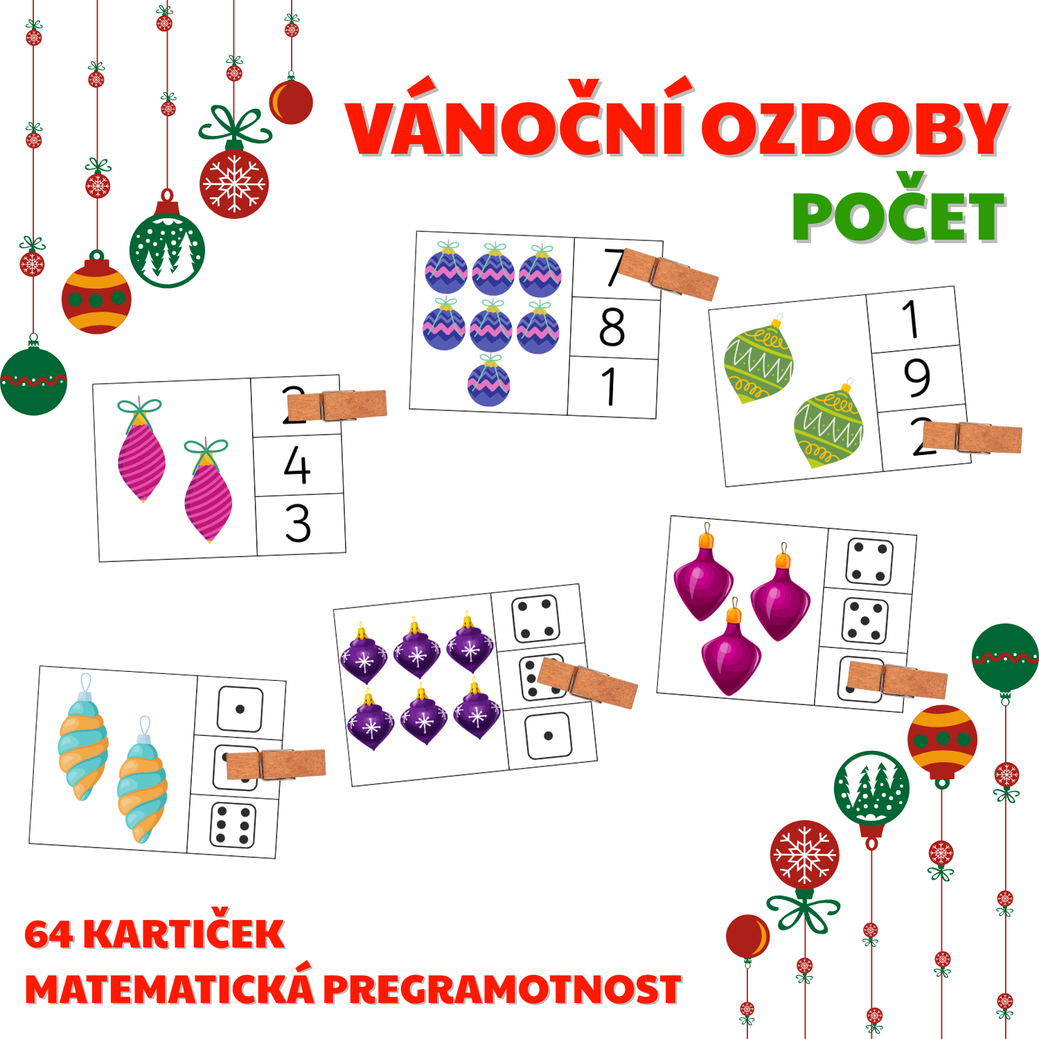 Soubor obsahující celkem 64 kartiček je určen k aktivitě "kolíčkování" a je zaměřený na rozvoj matematické pregramotnosti.