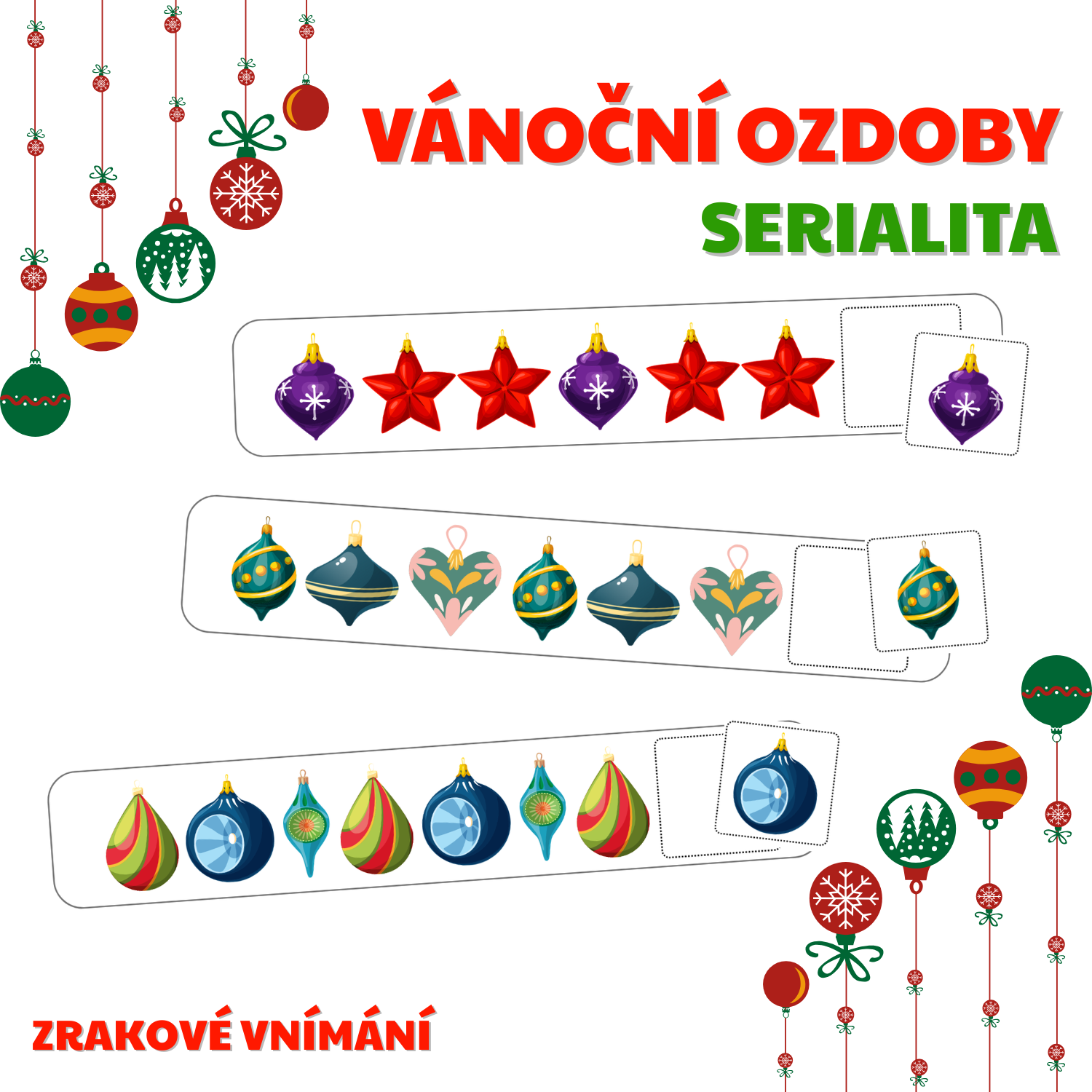 Soubor obsahuje 50 dlouhých kartiček s řadou obrázků a 50 malých kartiček s obrázky.