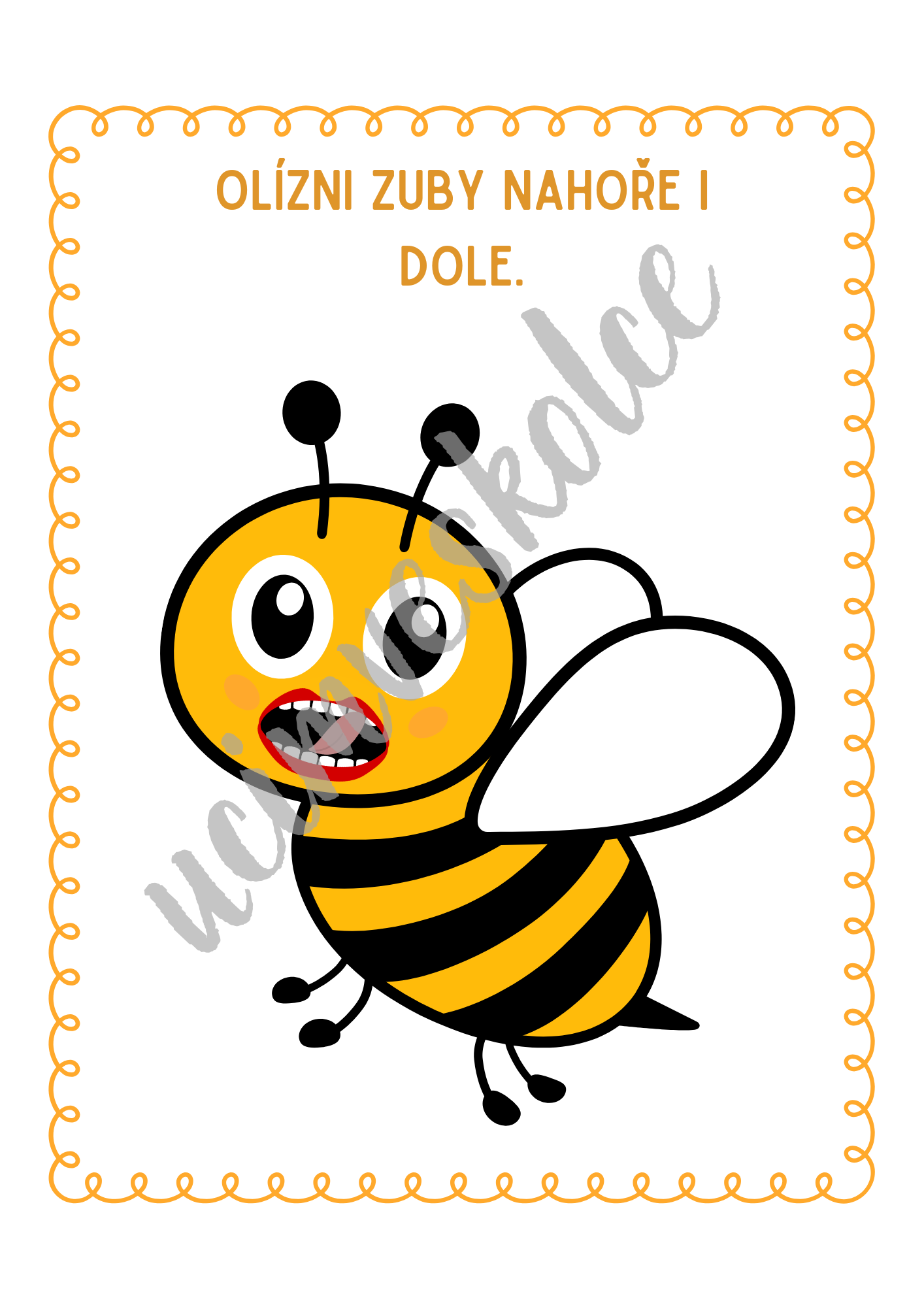 Na každé kartě je nakreslené konkrétní oromotorické cvičení i s popiskem.