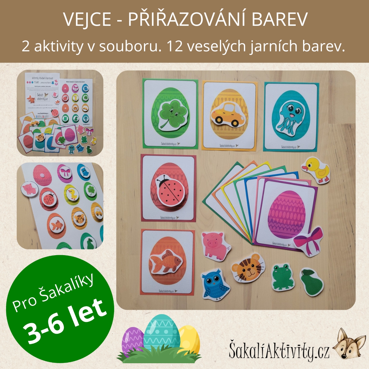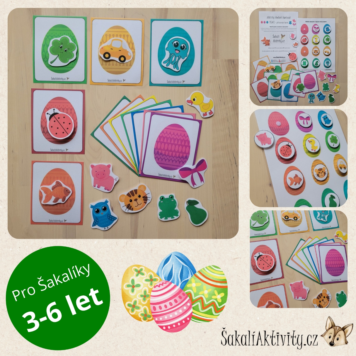 Hravá aktivita s Velikonoční tematikou, která u dětí podporuje zrakové vnímání barev a barevných odstínů, ale také jemnou motoriku při práci s kartami.