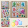 Sada obsahuje 12 předlohových karet s veselými a barevnými vejci. Dále sadu 12 obrázků ve stejných barevných odstínech. Dítě předměty třídí podle barev na karty vajec. Lze využít samolepící suchý zip pro zpestření celé aktivity. Součástí souboru je také obdobná karta velikosti A4 se všemi vejci a obrázky k přiřazení. Využijte obě, kombinujte, nebo si vyberte tu, která Vám více vyhovuje.