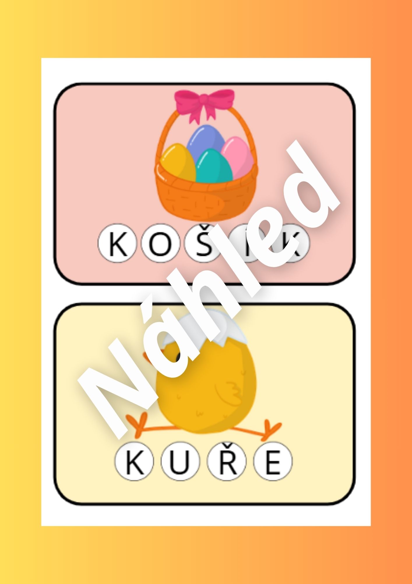 - Velikonoční postřehovka (str. 22-25) - děti si rozdají kartičky a poté hledají shodné obrázky, procvičují pozornost a zrakové vnímání