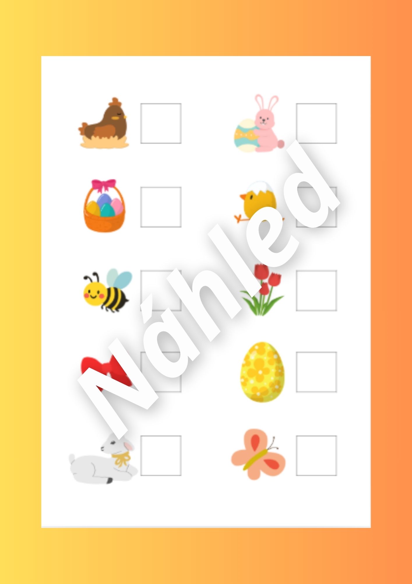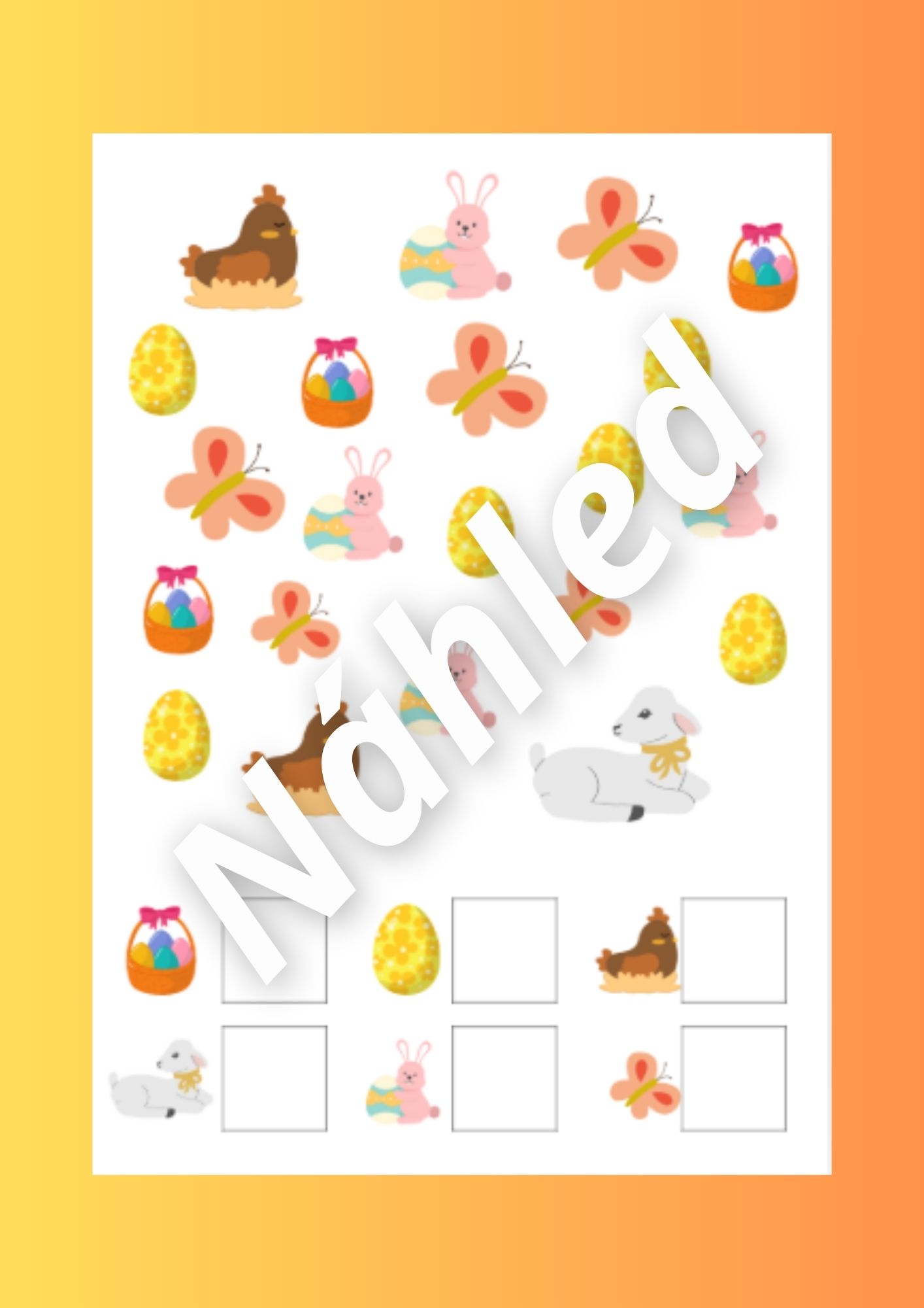 - Půlky vajíček (str. 11-13) - rozstříháme vajíčka a děti pak hledají správné poloviny, aby správně složily vajíčko.
