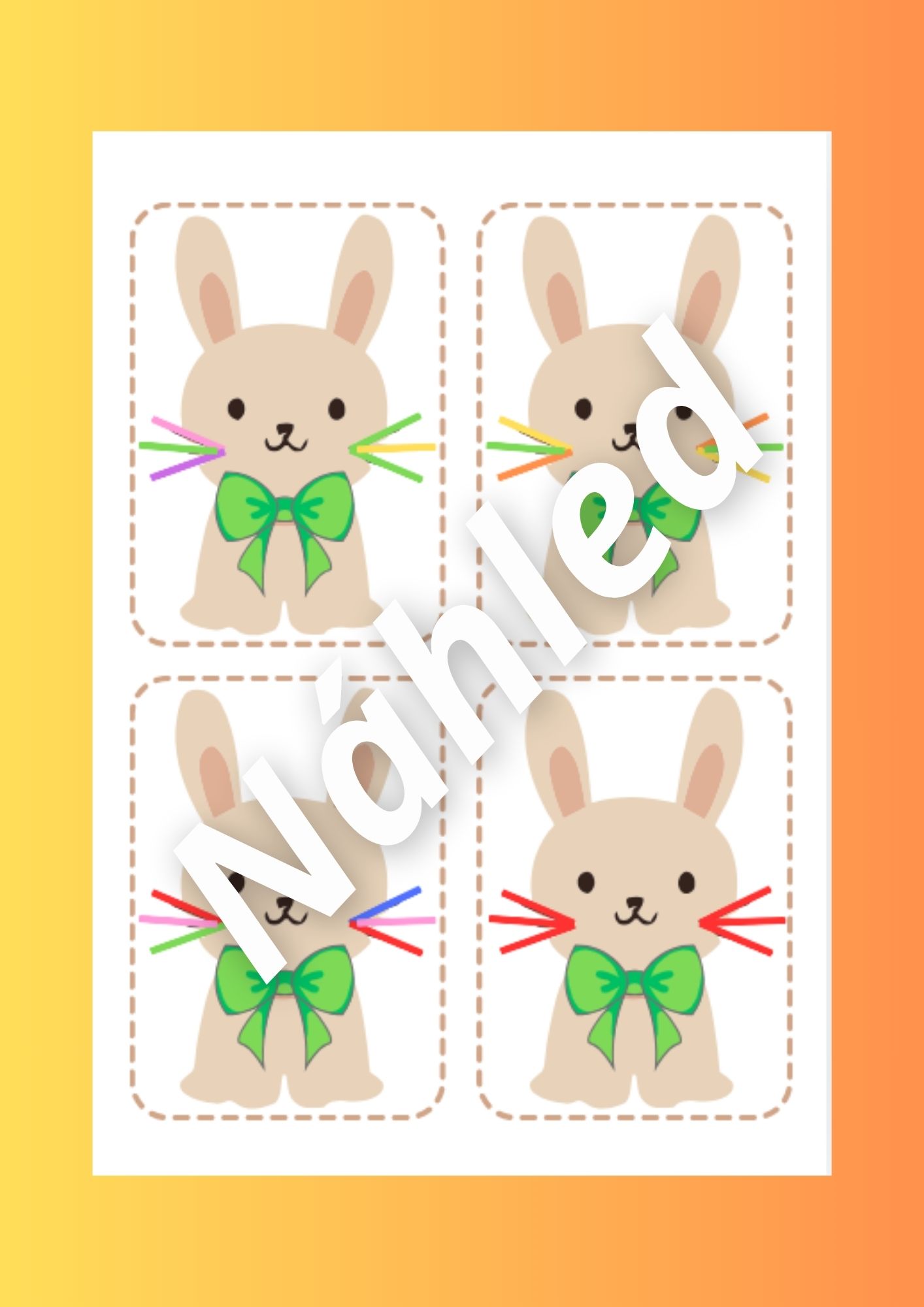 - Skládání velikonočníha zajíčka (str. 7-15) - rozstříháme mašle a fousky, poté je děti skládají podle zadání