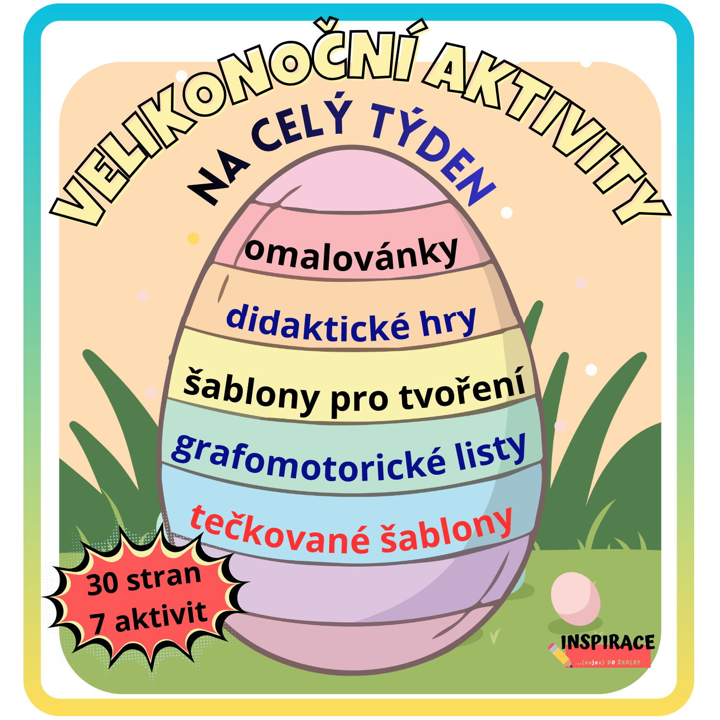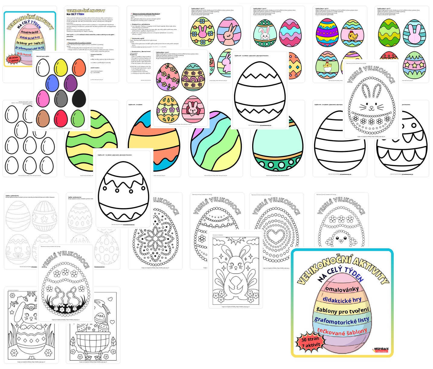 Tento materiál nabízí pestrou paletu velikonočních aktivit pro děti, zaměřených na spolupráci, jemnou motoriku, grafomotoriku i kreativní tvoření. Všechny aktivity lze snadno přizpůsobit věku dětí, prostředí (třída, domov, světelný box) i dostupným pomůckám.