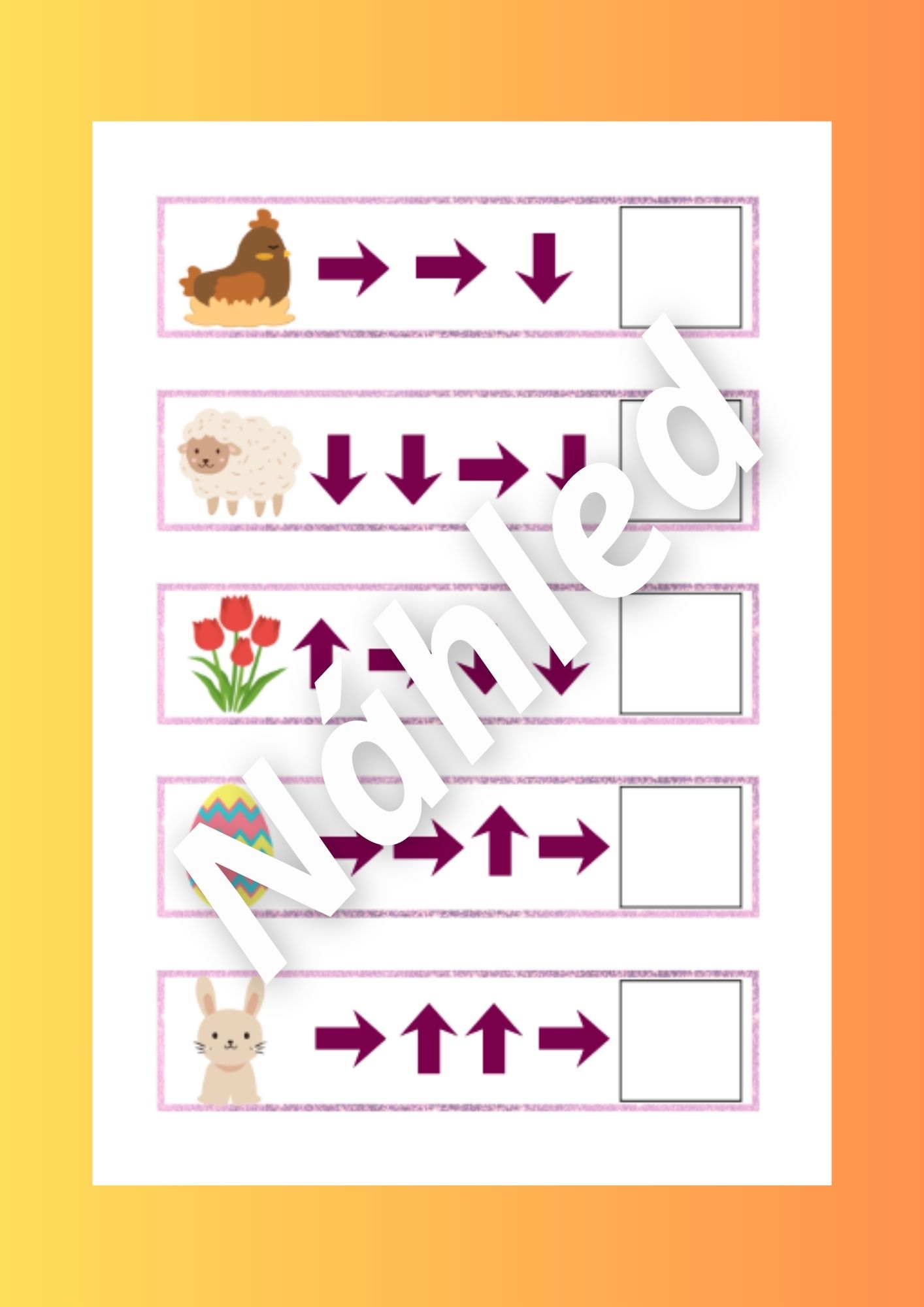 - Velikonoční šipkovaná - děti najdou cestu pomocí šipek k obrázku (poslední stranu souboru rozstříháme, pak obrázky přikládáme ke kartičkám s šipkami)