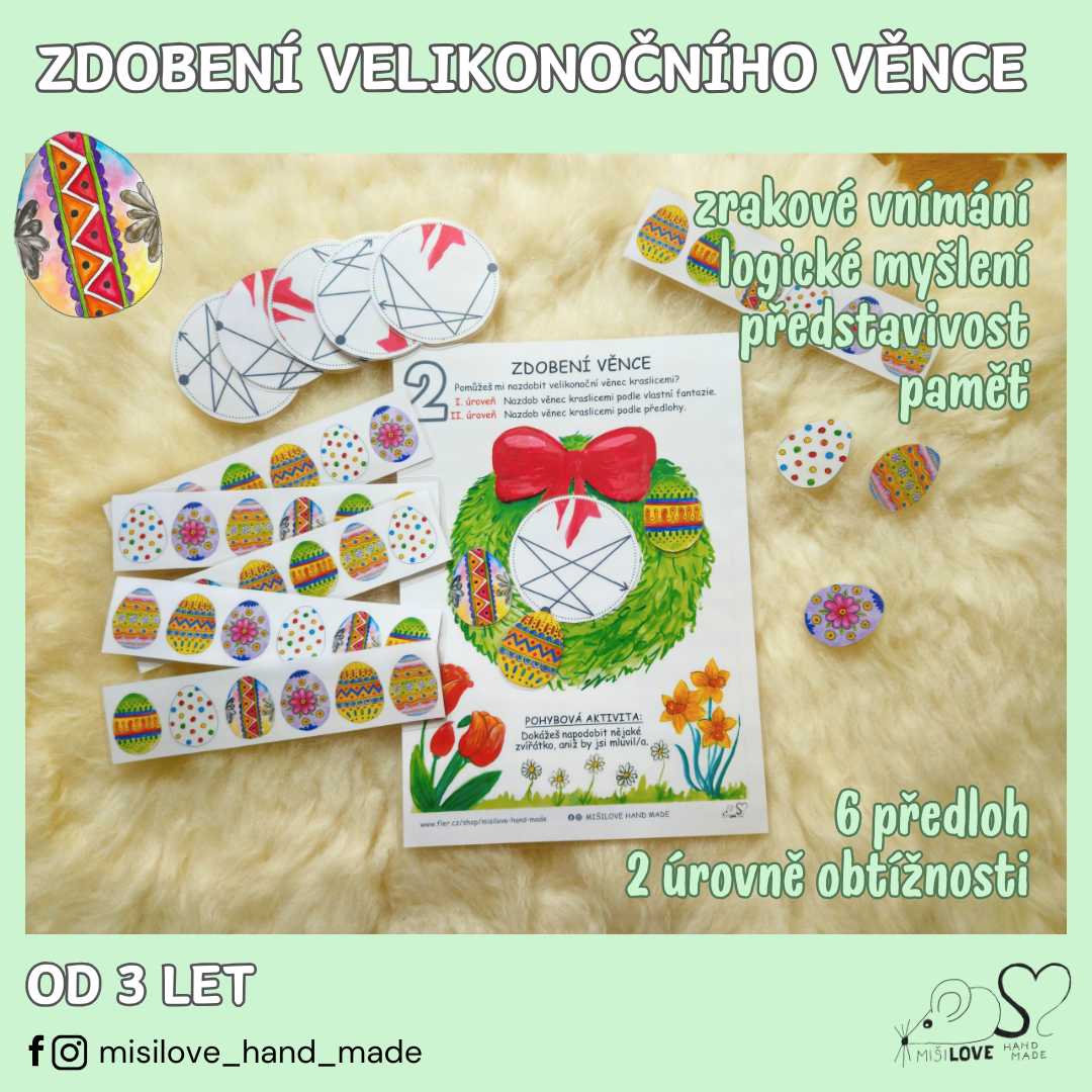 Velikonoční logická posloupnost – Zdobení věnce podle předlohy (MŠ + 1. stupeň ZŠ)