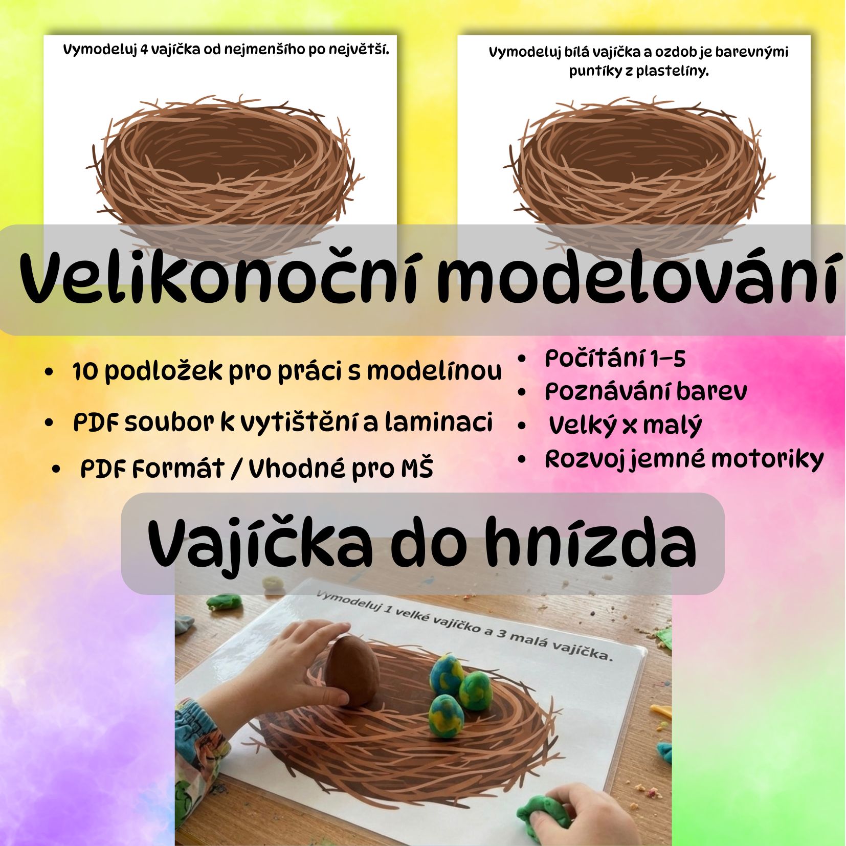 🥚 Velikonoční modelování: Vajíčka do hnízda (PDF)