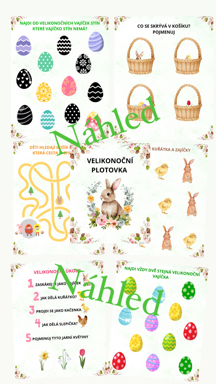 - obsahuje 10 stanovišť - počítání, stíny, bludiště, velikonoční úkoly, co se skrývá v košíku, a další...