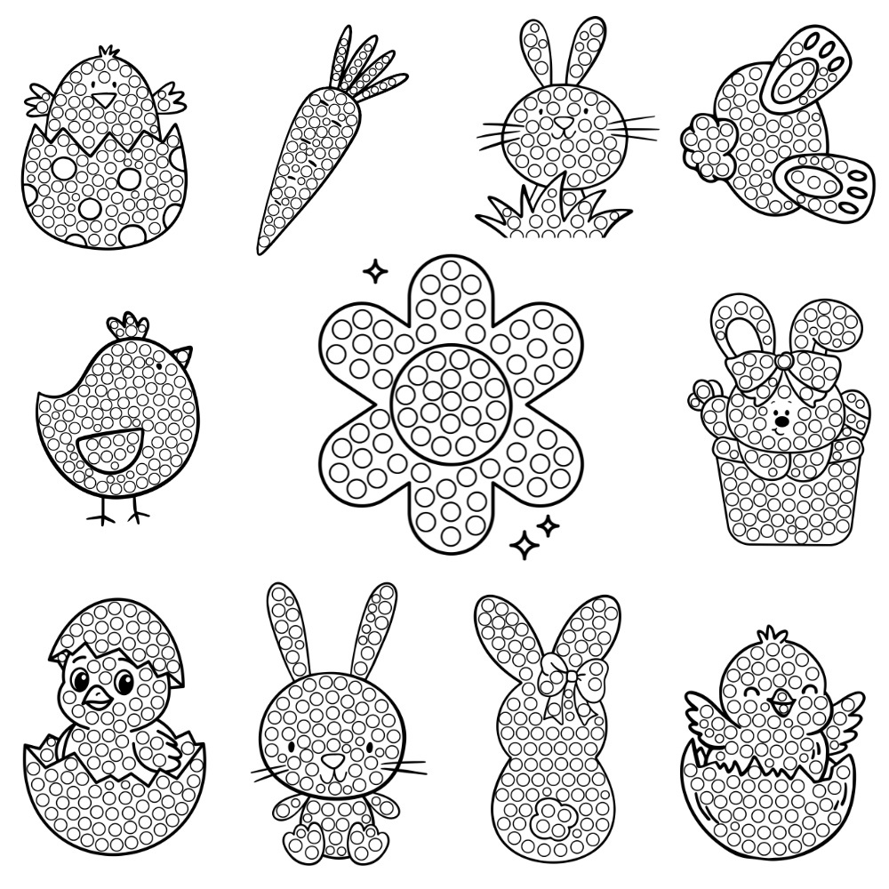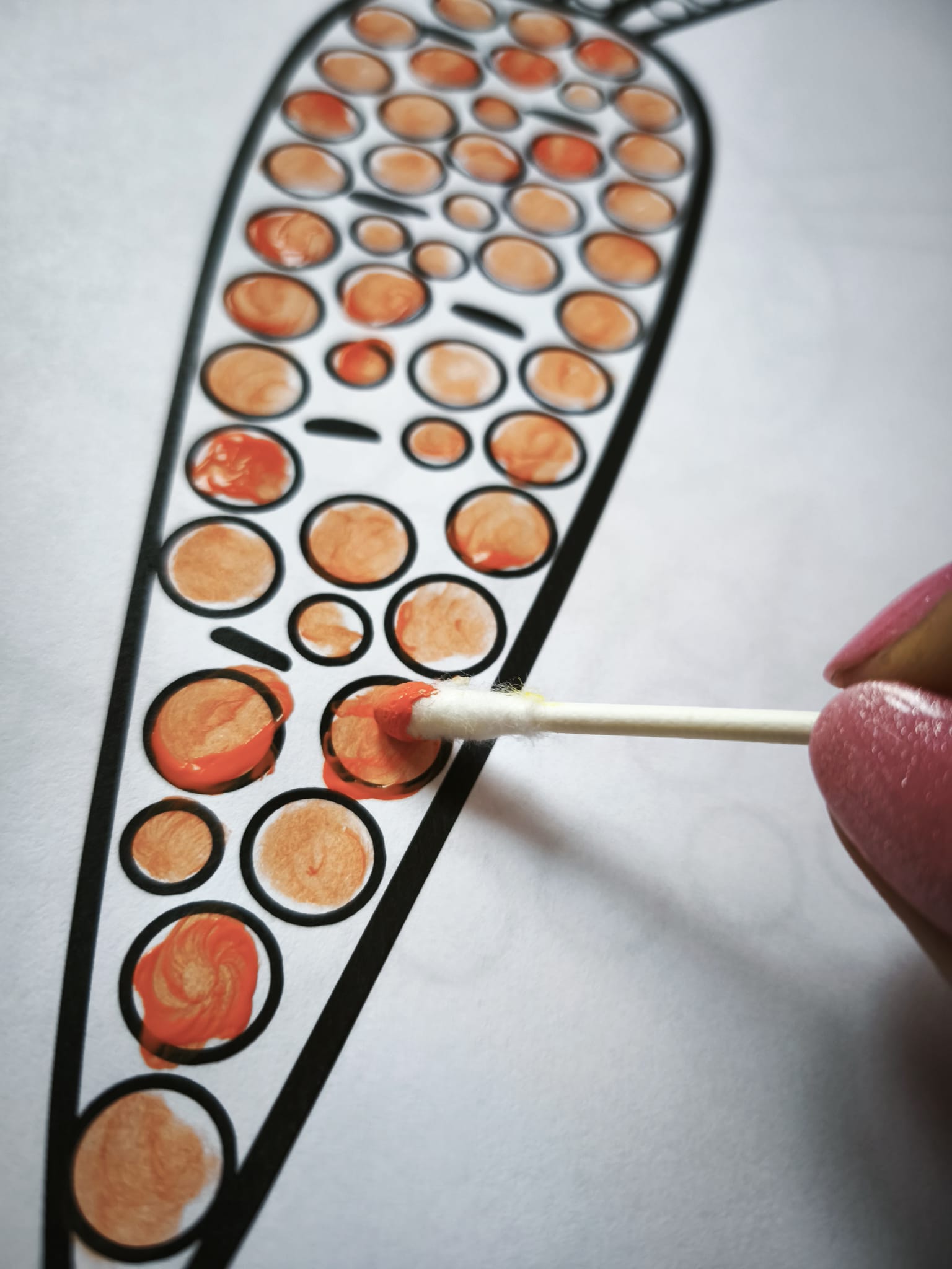 Vatovou tyčinkou a vodovkami/temperami vyťukávejte kroužky na obrázku. Poté si děti mohou obrázky domalovat podle sebe.