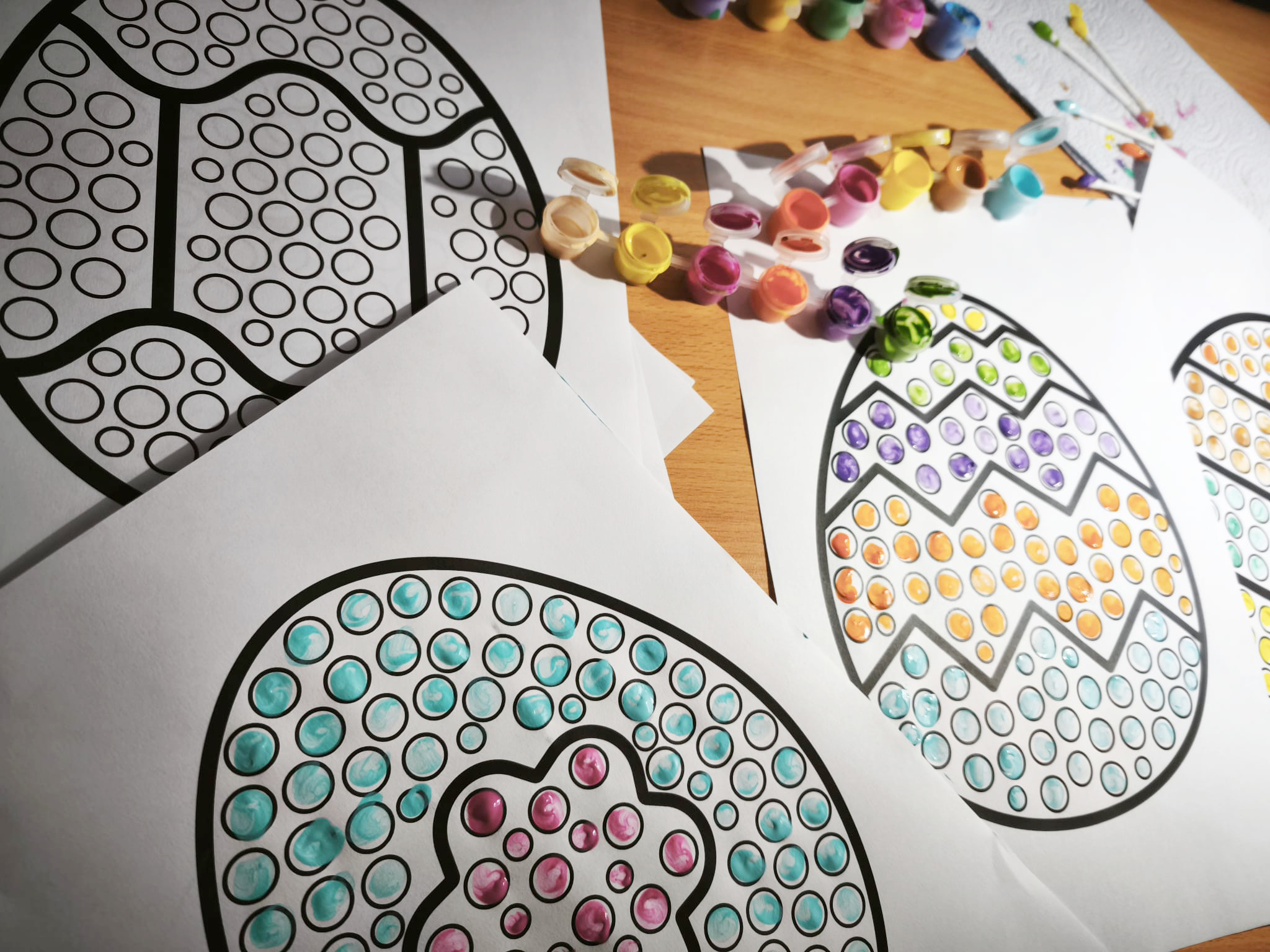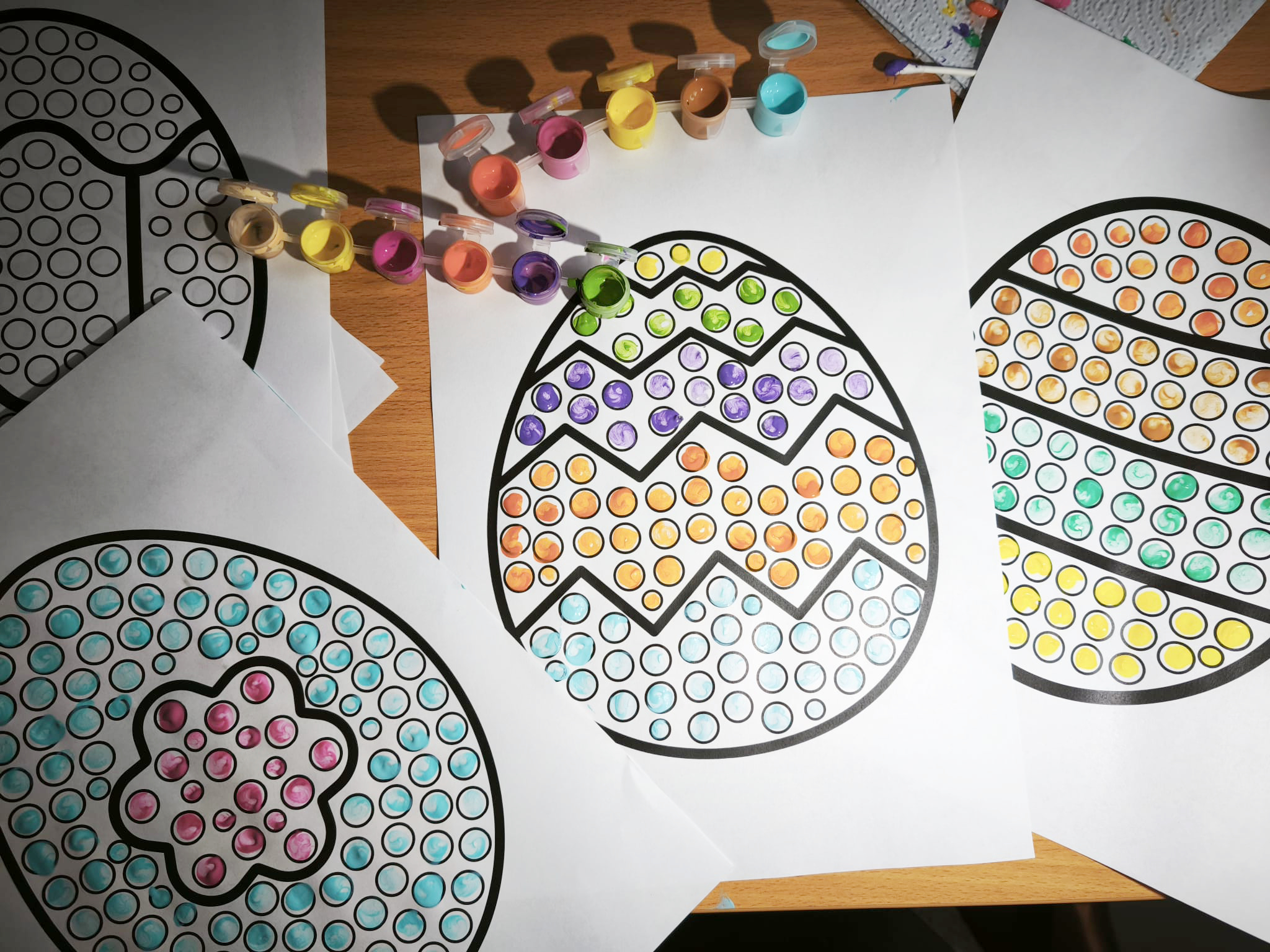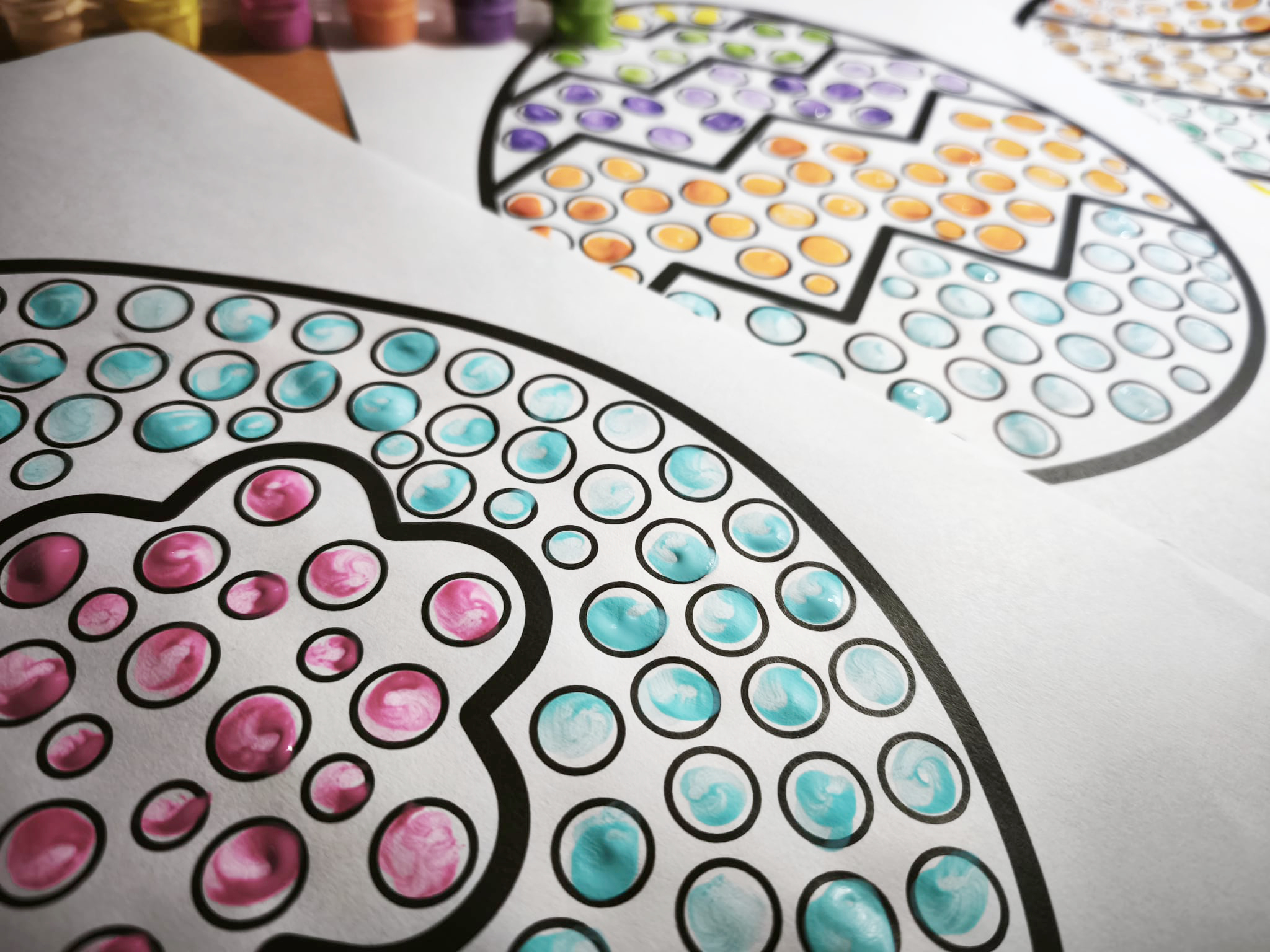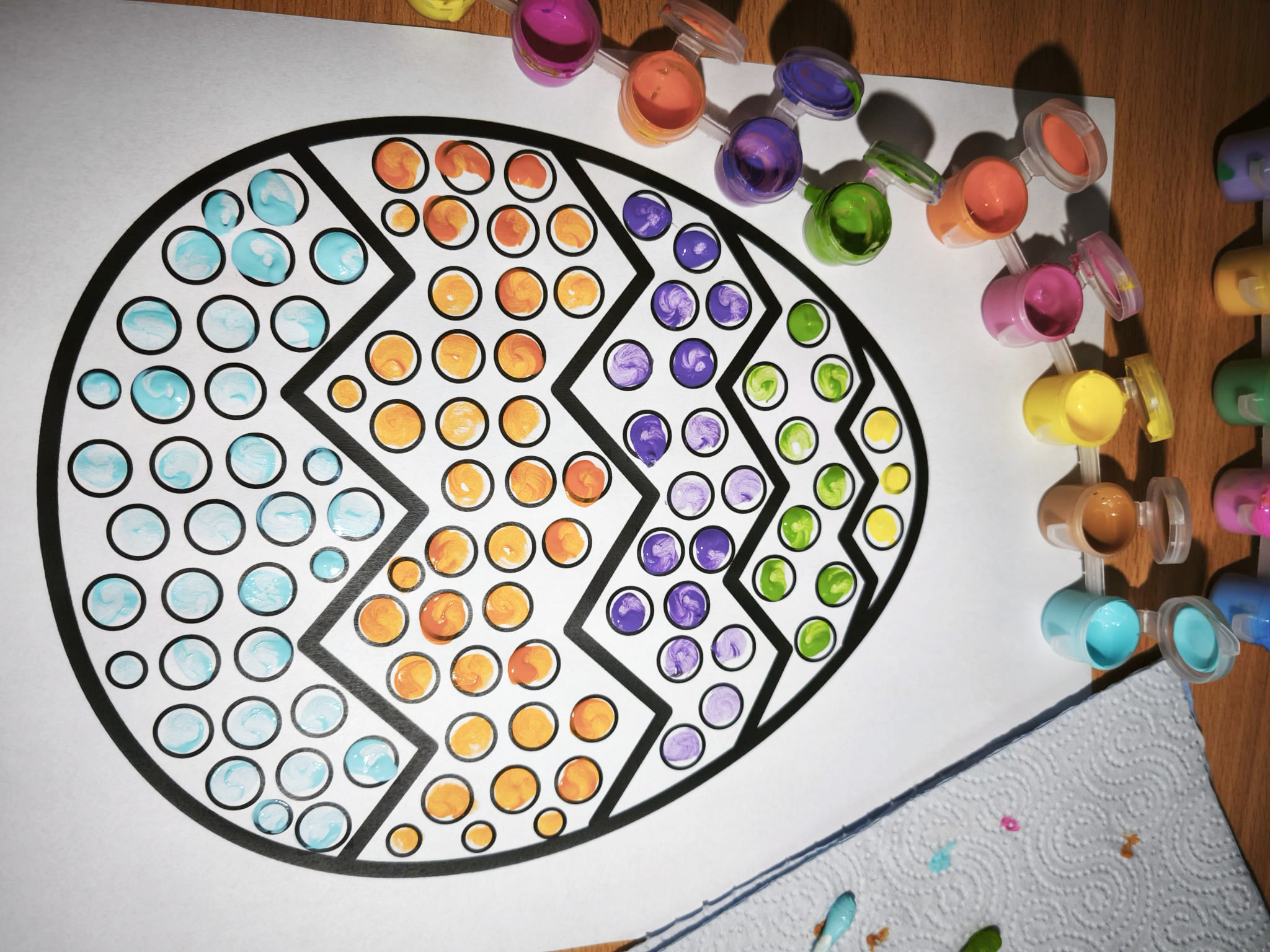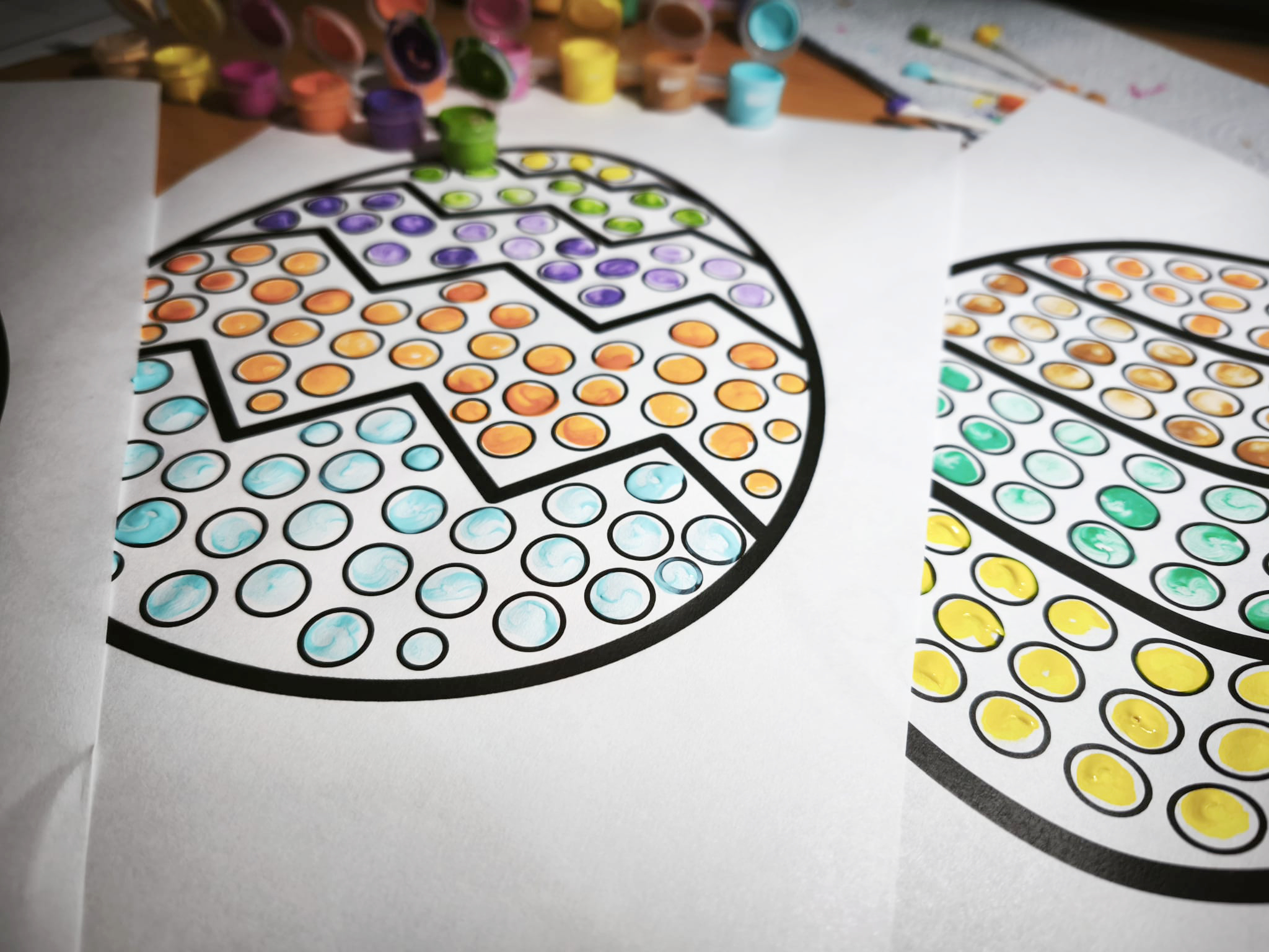 Vatovou tyčinkou a vodovkami/temperami vyťukávejte kroužky na obrázku. Poté si děti mohou obrázky domalovat podle sebe.