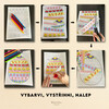 Vše je zpracováno v jednotném stylu s přehlednými liniemi, vhodnými pro děti různých věkových kategorií.
