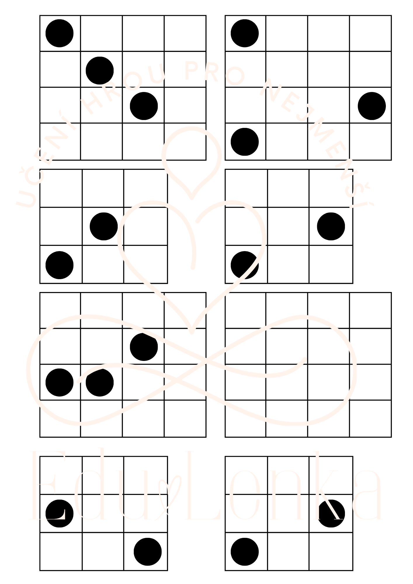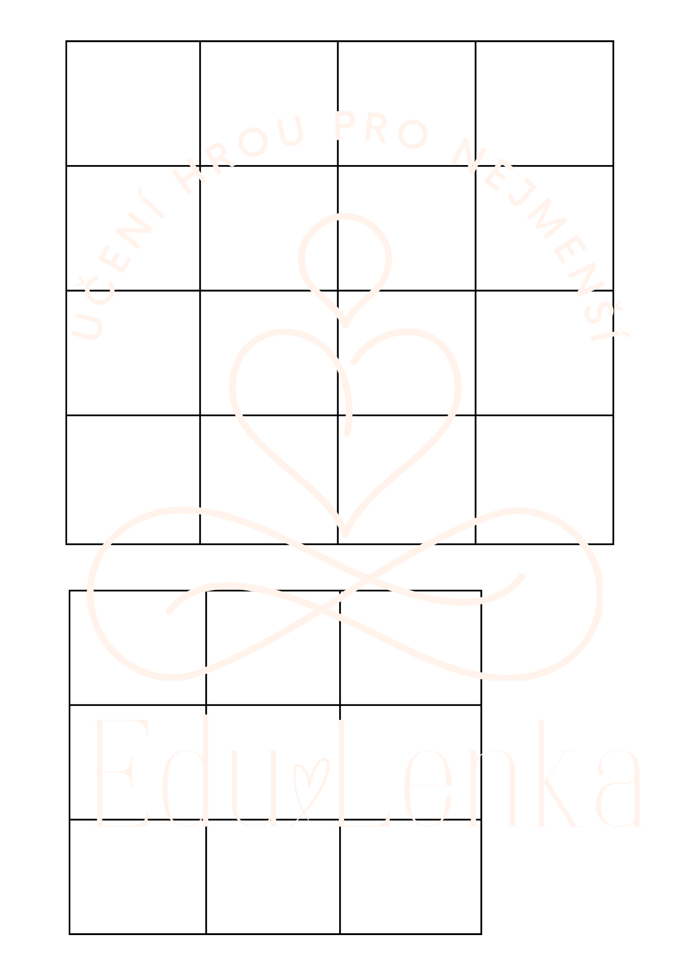 - prázdné tabulky pro skládání vajíček - 4x4 nebo 3x3