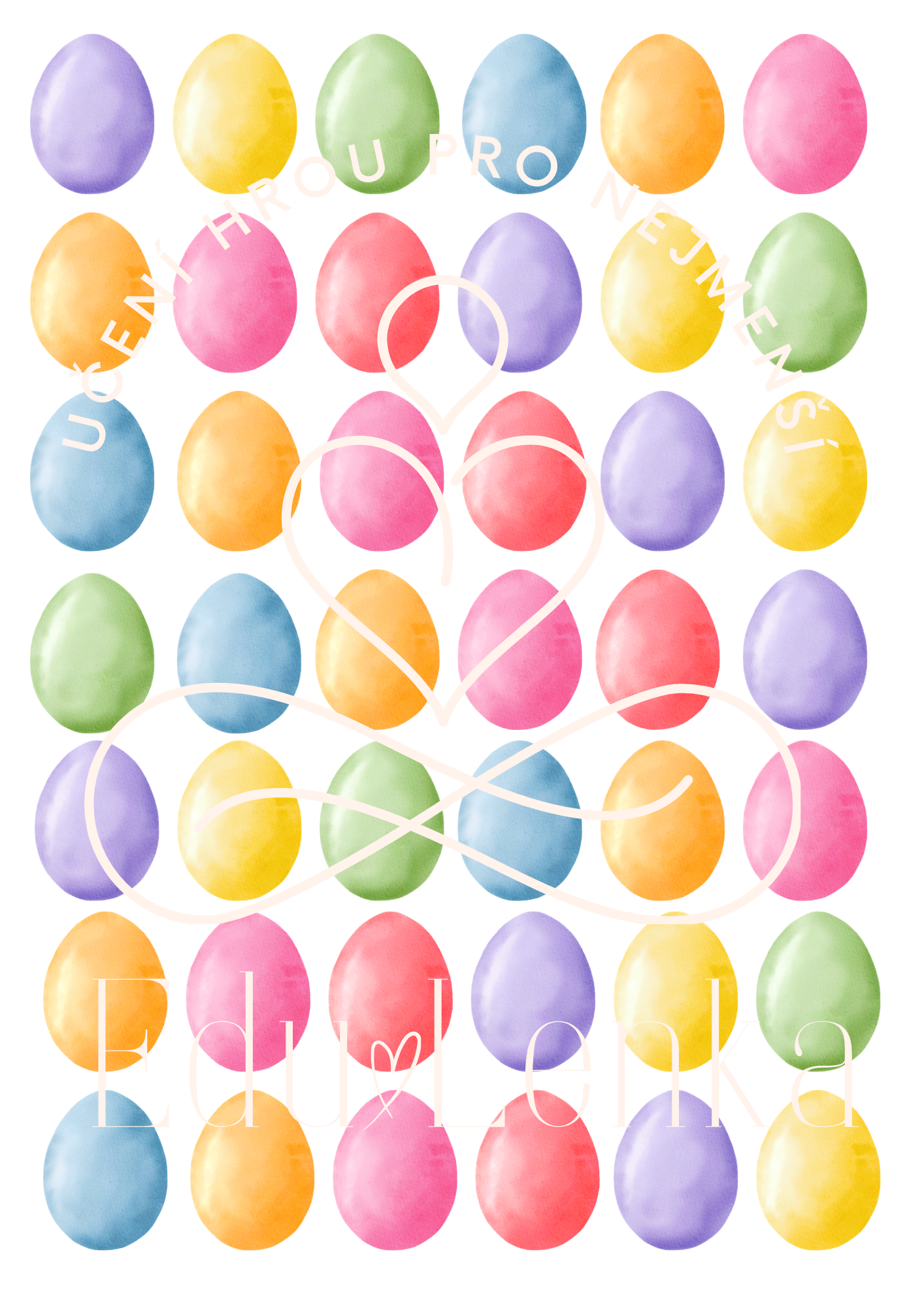 - barevné puntíky - dítě rozlišuje barvu a umístění vajíčka