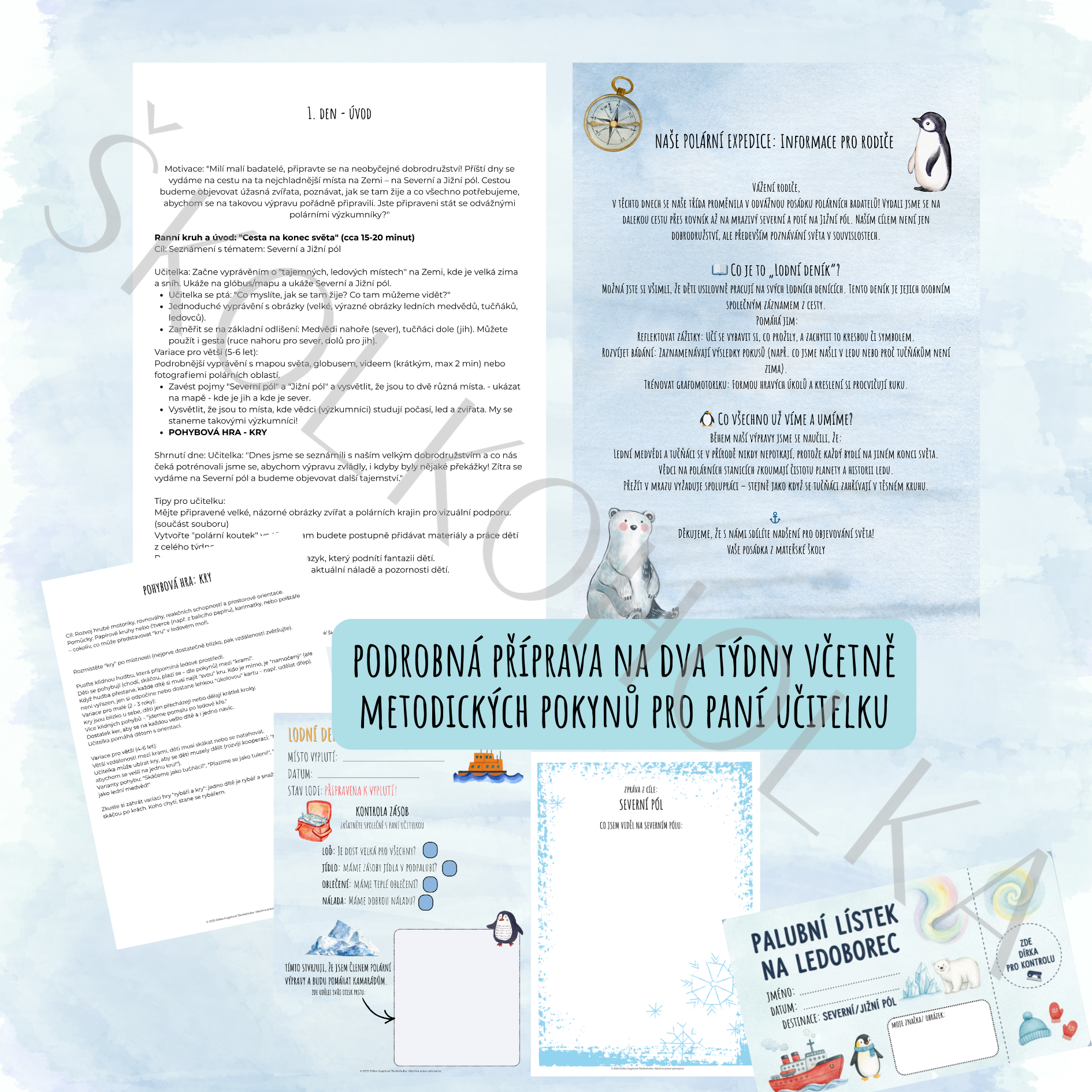 - 🗺️ Dvoutýdenní kompletní příprava: Podrobně rozpracovaný plán pro každý den! Děti hravou formou staví vlastní loď, loví ryby pro posádku, bádají s ledem a objevují taje pólů.