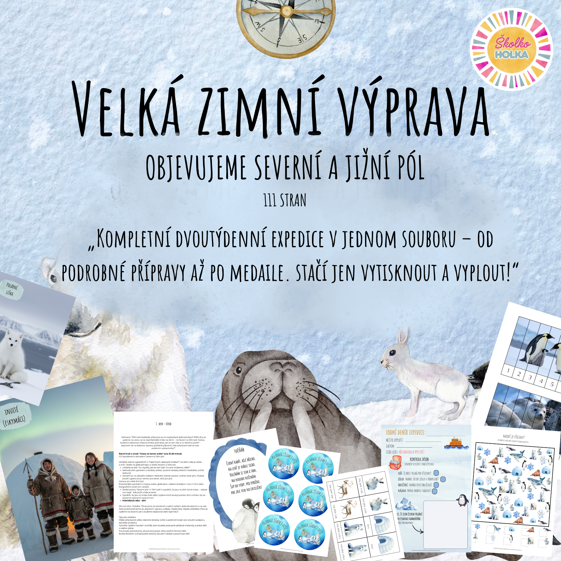 ✅ Vše v jednom: Materiál pokrývá všechny vzdělávací oblasti podle RVP PV. ✅ Bez práce: Minimalizuje přípravu učitelky – vše je provázané, logické a připravené k okamžitému tisku! 🖨️ ✅ Zážitek na celý život: Děti se neučí jen fakta, ale prožívají dobrodružství, na které budou dlouho vzpomínat. 💙❄️
