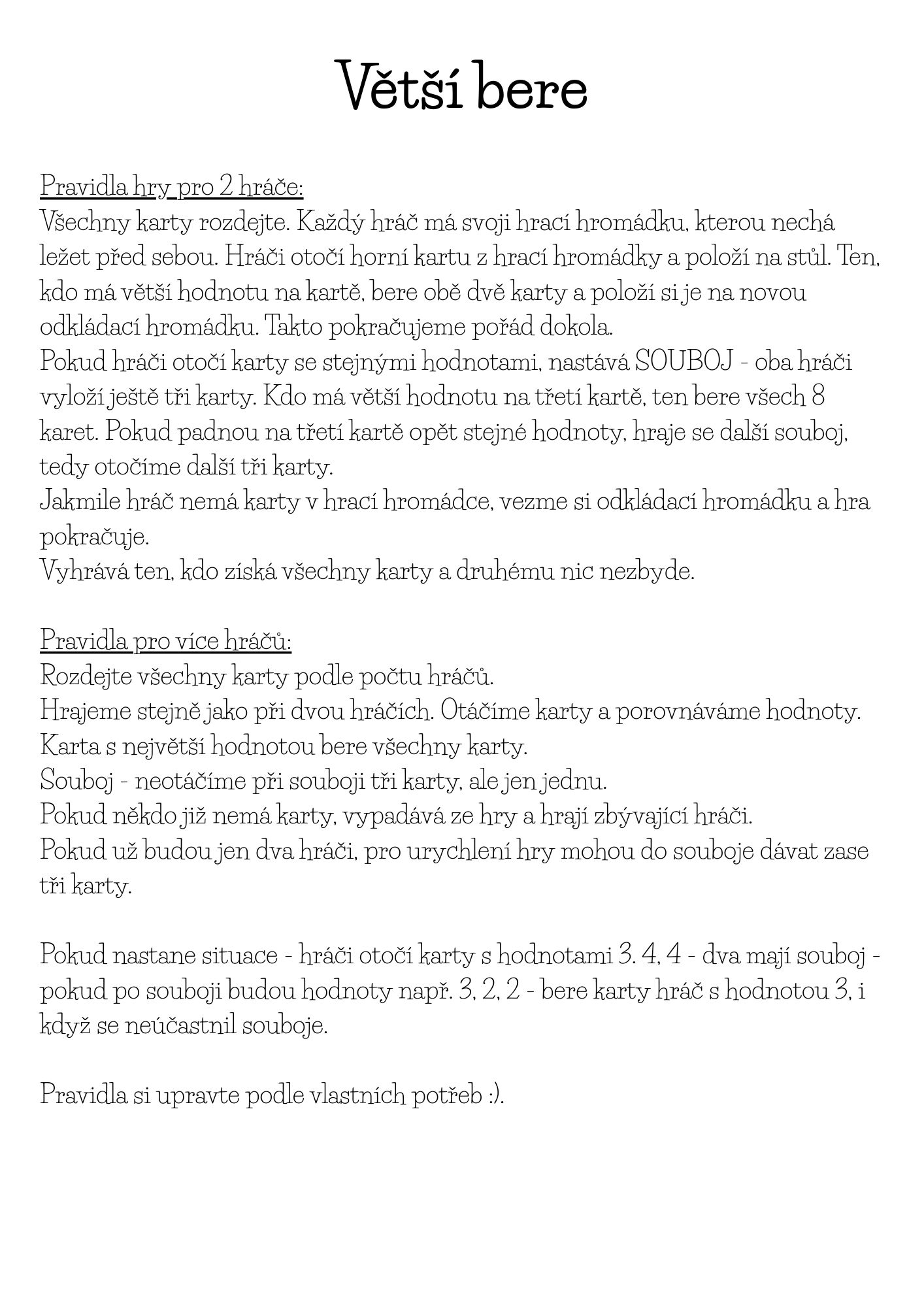 Novinka Kategorie produktu Zvířátka ze ZOO Připravujeme se do školy ABECEDA, PÍSMENA, ČÍSLA Karty, Hry, Puzzle, Skládačky, atd Prodávající: LenkaŠenkeříková Cena za ks: 25 Kč s DPH Popis Máte dotaz? Jednoduchá karetní hra pro děti předškolního věku. Zábavná karetní hra pro děti MŠ. Ale mám vyzkoušeno, že baví i starší děti a dospělé :). V naší MŠ hrají děti denně.. :) Děti si procvičují porovnávání čísel (menší x větší). You must have JavaScript enabled to use this form. Vaše jméno Váš e-mail Předmět Zpráva Odesláním formuláře souhlasím se zpracováním osobních údajů