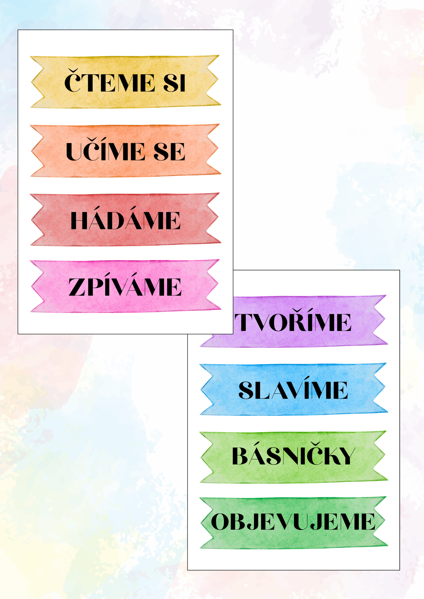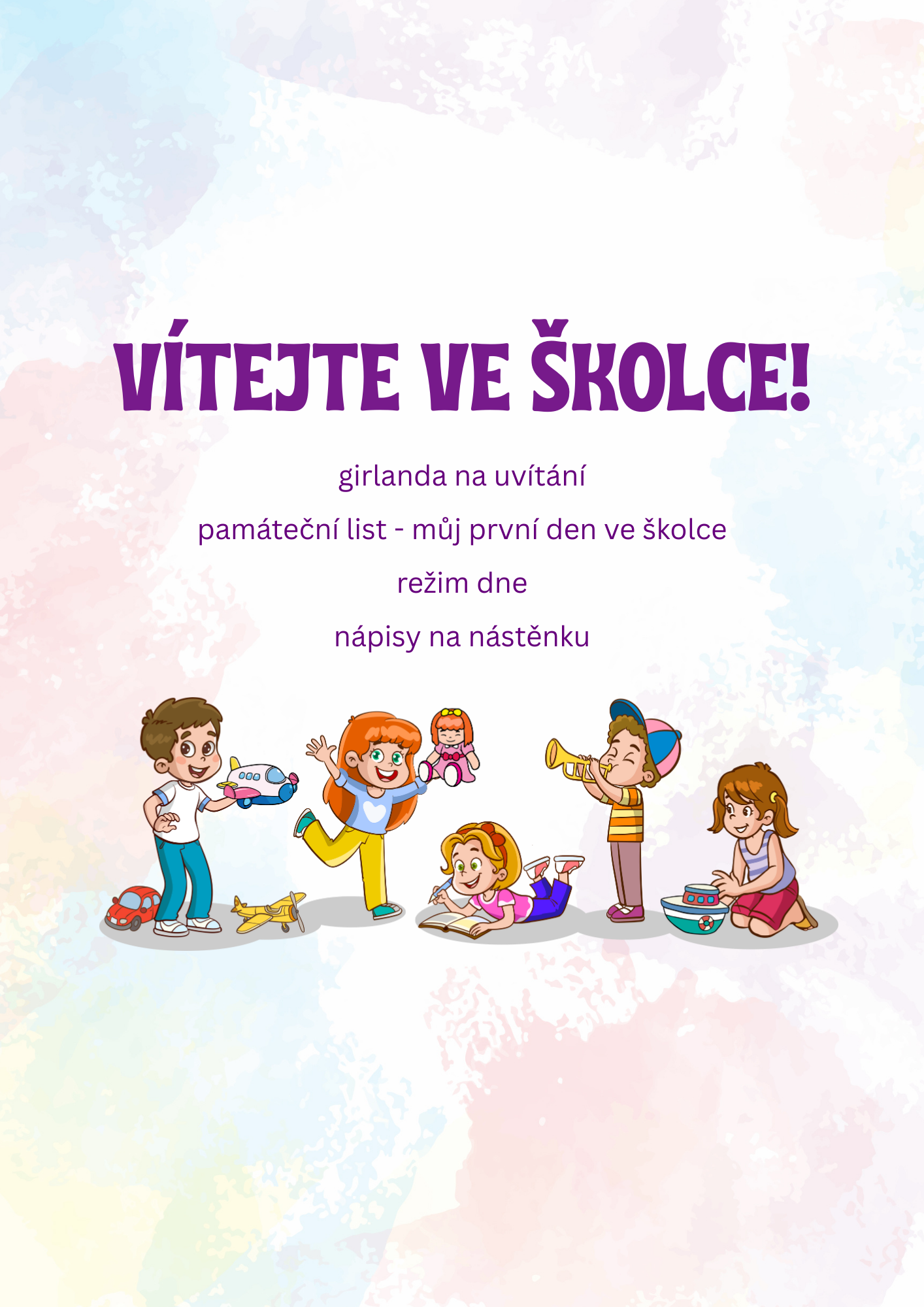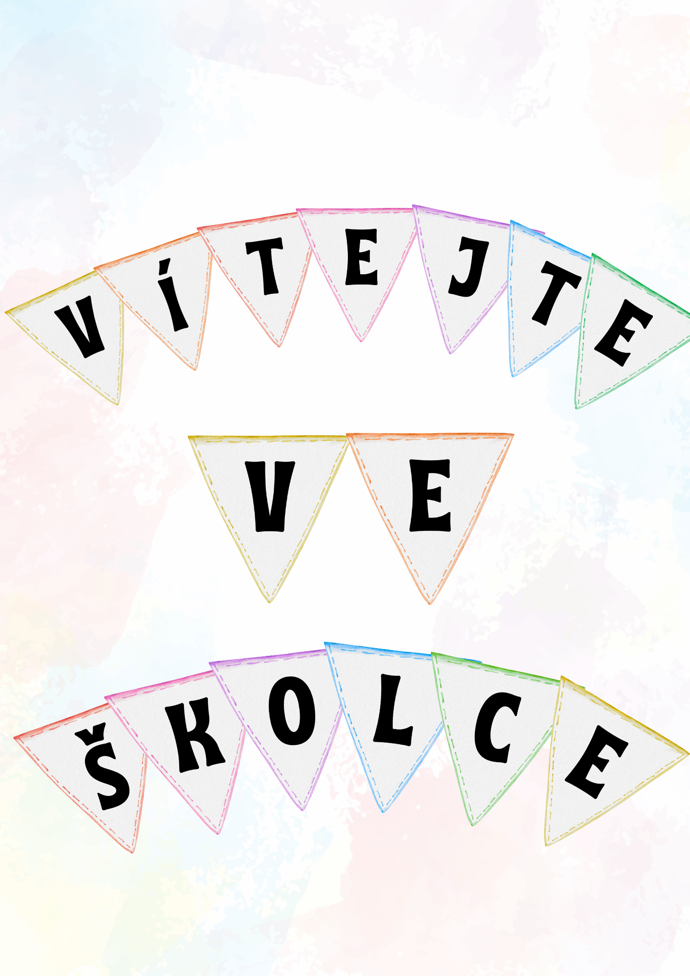 - girlandu s nápisem VÍTEJTE VE ŠKOLCE a dva roztomilé obrázky