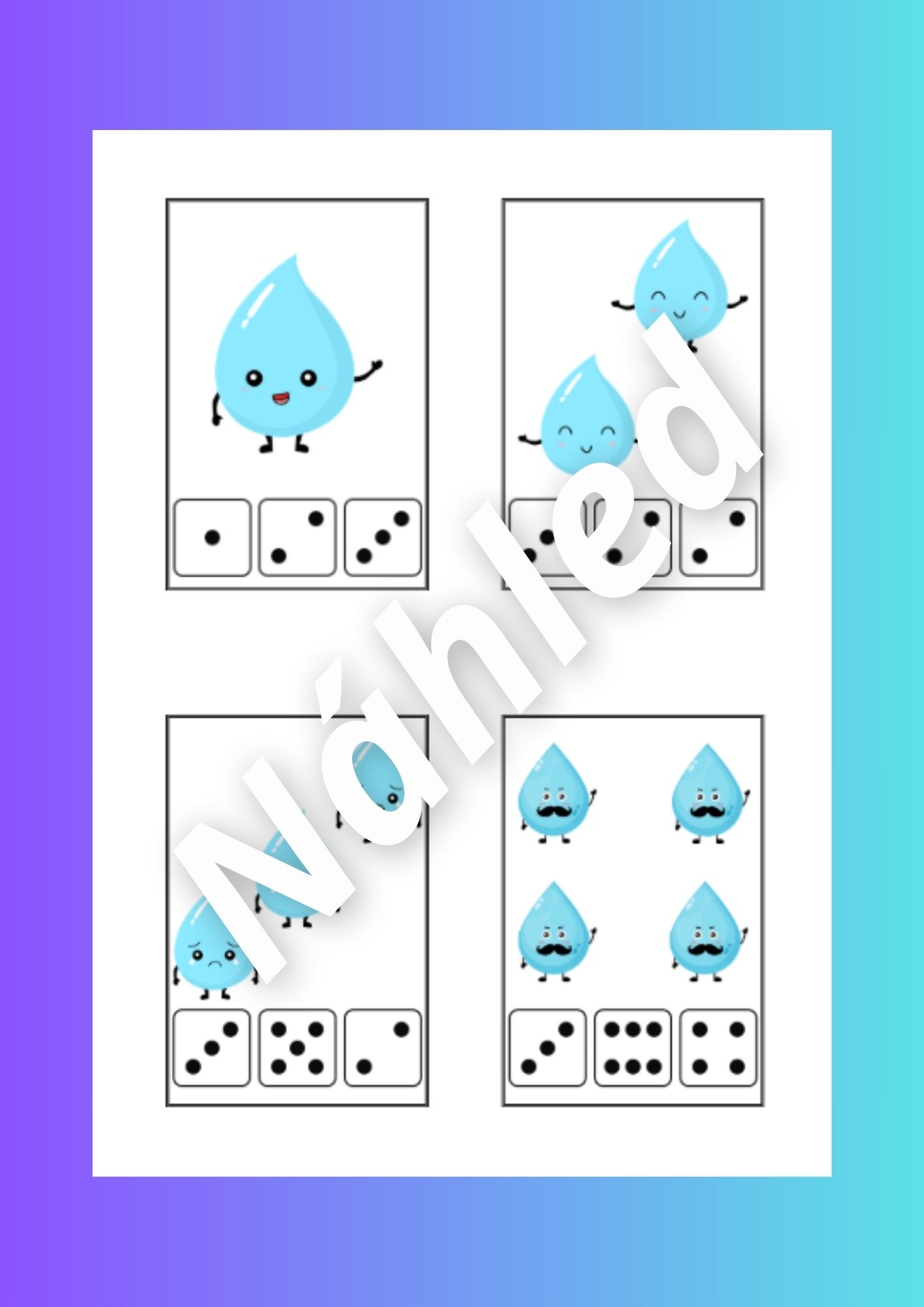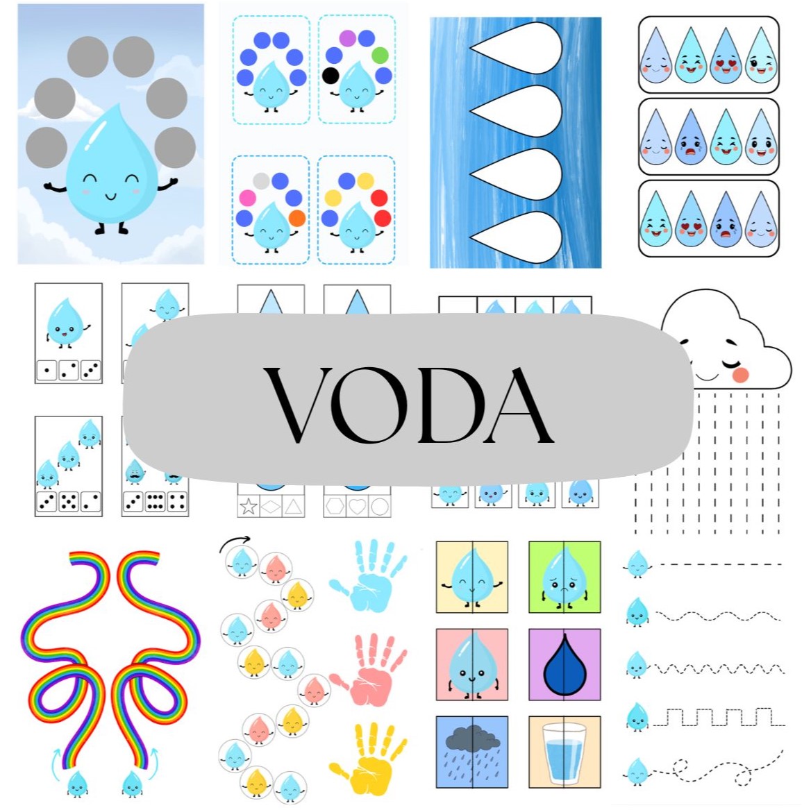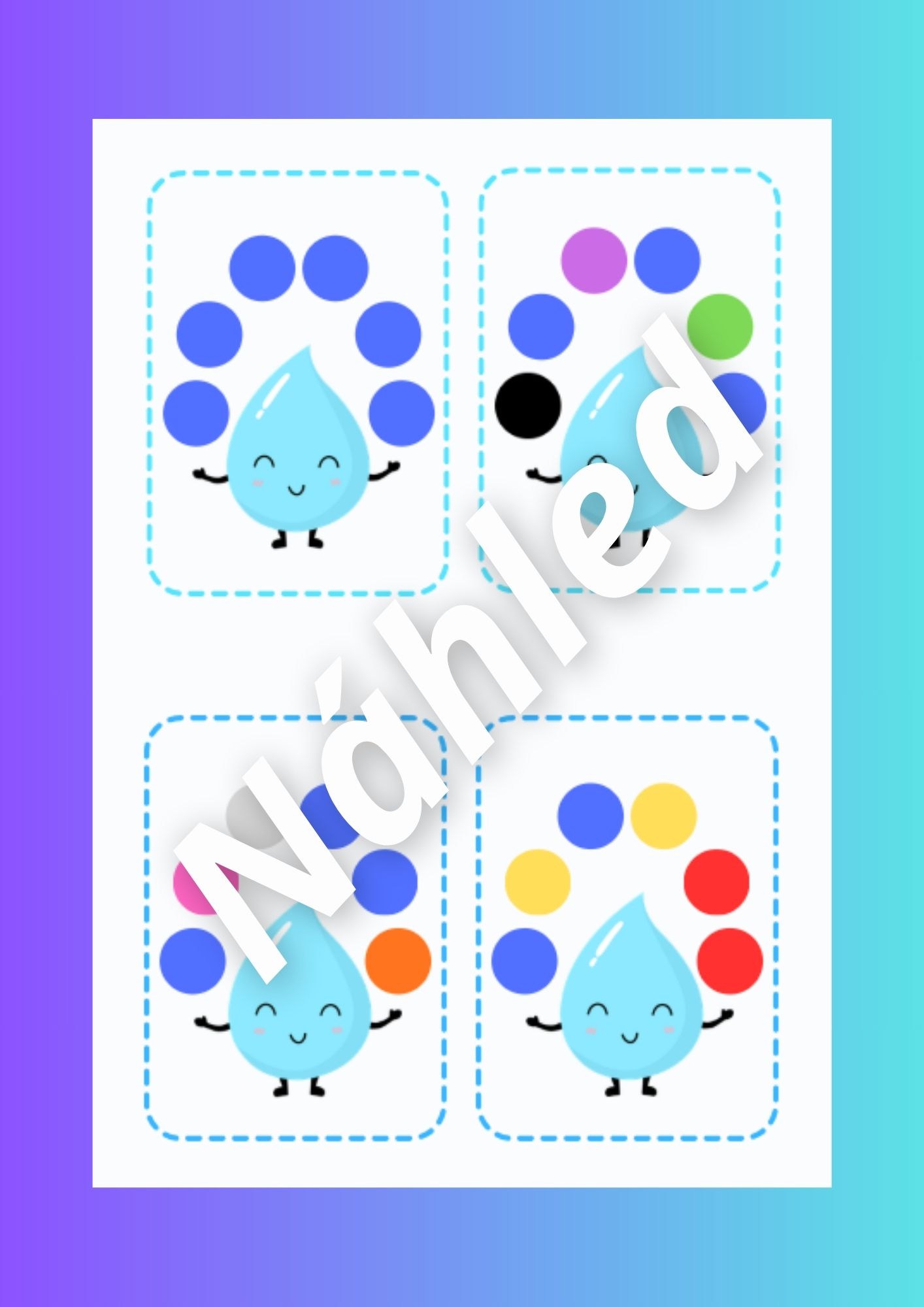 - Skládání kapiček podle zadání (str. 6-11) - rozstříháme kapičky a pak je děti skládají podle zadání
