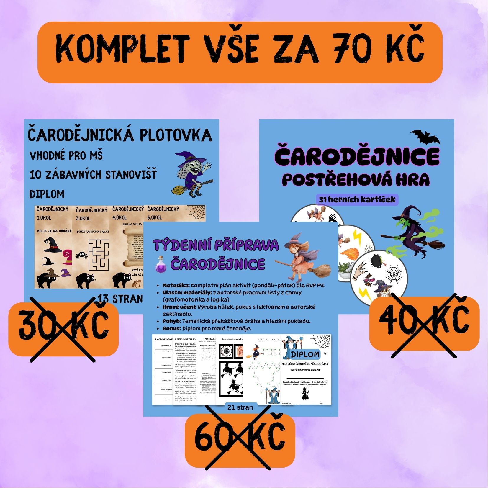 Bonus: Na závěr balíčku najdete také Diplom pro malé čaroděje a čarodějnice, který slouží jako odměna za zvládnutí všech úkolů z přípravy, postřehovky i plotovky.