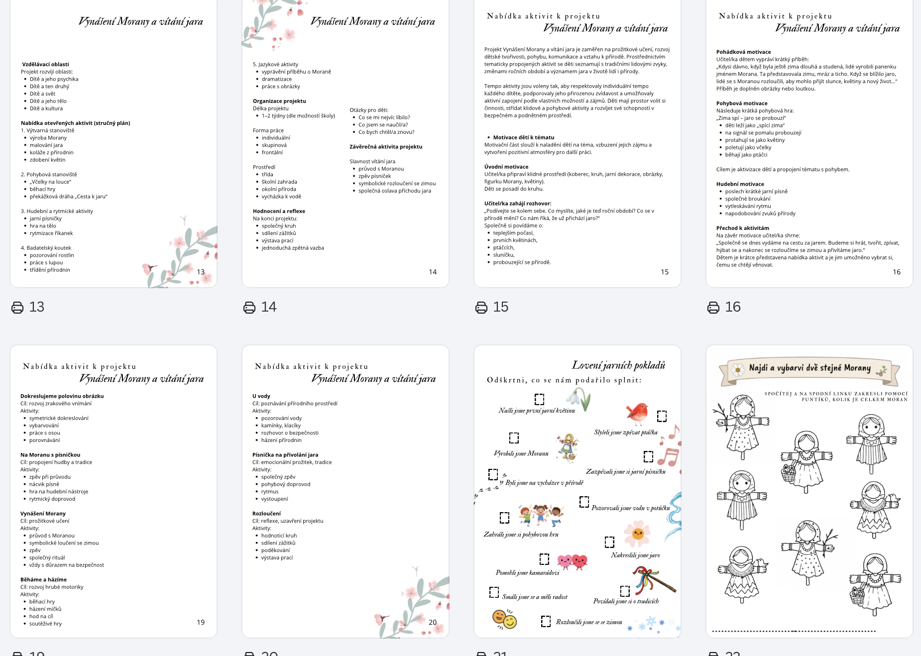 Kompletní vzdělávací projekt zaměřený na tradiční zvyk loučení se zimou a příchod jara. Obsahuje otevřené aktivity, pracovní listy, smyslové hry, tvoření i metodiku pro učitele.