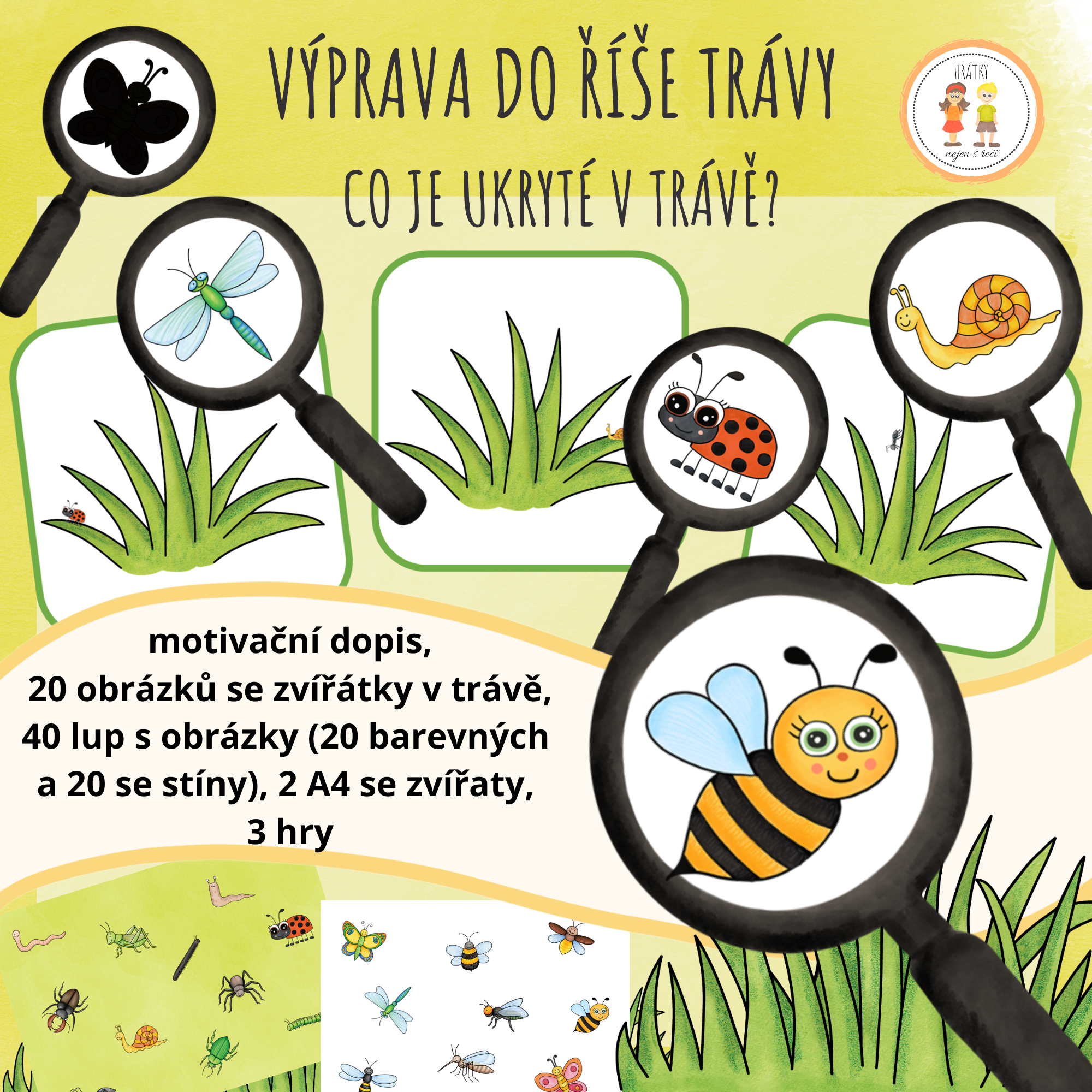 bydlím v měkké a voňavé trávě, kde se každý den dějí malá a velká dobrodružství. Možná se vám zdá být tráva obyčejná, ale věřte mi, skrývá se v nich spousta mých zvířecích kamarádů.