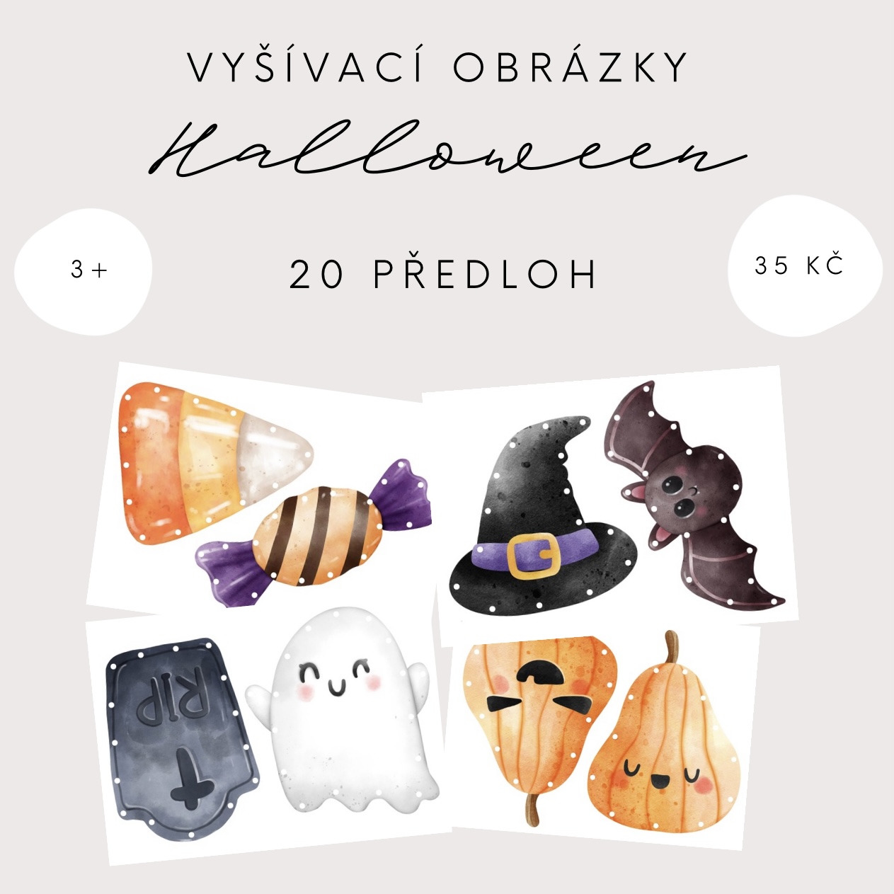 Představujeme Vám náš soubor vyšívacích obrázků na téma Halloween, který je určen především pro děti předškolního věku. V materiálu najdete 20 obrázků, po jejichž obvodu jsou vyznačené puntíky pro vytvoření dírek.