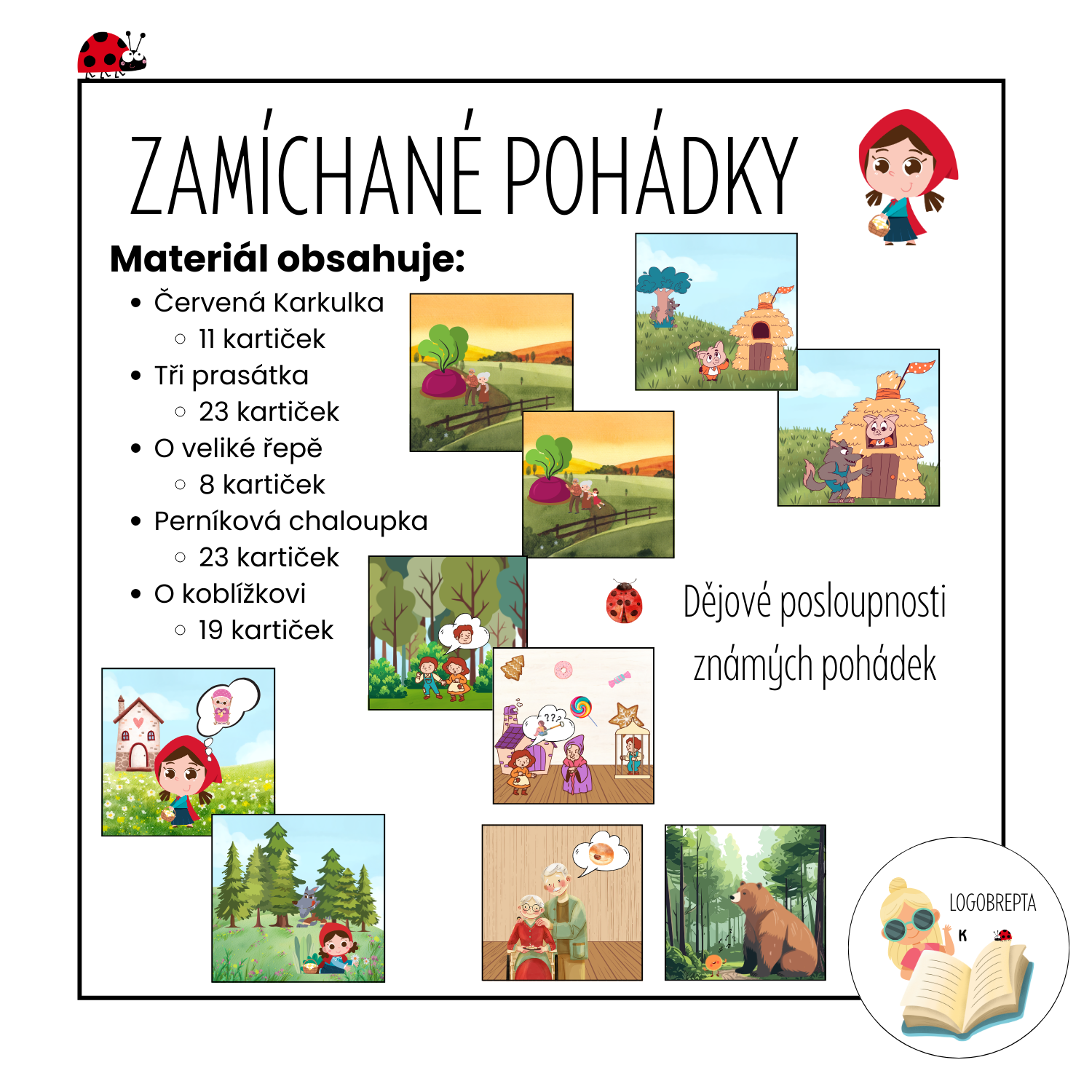 Novinka Kategorie produktu Den dětí, Prázdniny DALŠÍ témata a náměty 📝 Logopedie POHÁDKY, pověsti, básničky Prodávající: KristýnaRochowanská Cena za ks: 60 Kč s DPH Popis Související produkty Máte dotaz? Dějové posloupnosti známých pohádek 🧙♂️🧚 Materiál obsahuje: Červená Karkulka 11 kartiček Tři prasátka 23 kartiček O veliké řepě 8 kartiček Perníková chaloupka 23 kartiček O koblížkovi 19 kartiček Novinka ZÁBAVNÉ POHÁDKY KristýnaRochowanská 50 Kč s DPH You must have JavaScript enabled to use this form. Vaše jméno Váš e-mail Předmět Zpráva Odesláním formuláře souhlasím se zpracováním osobních údajů