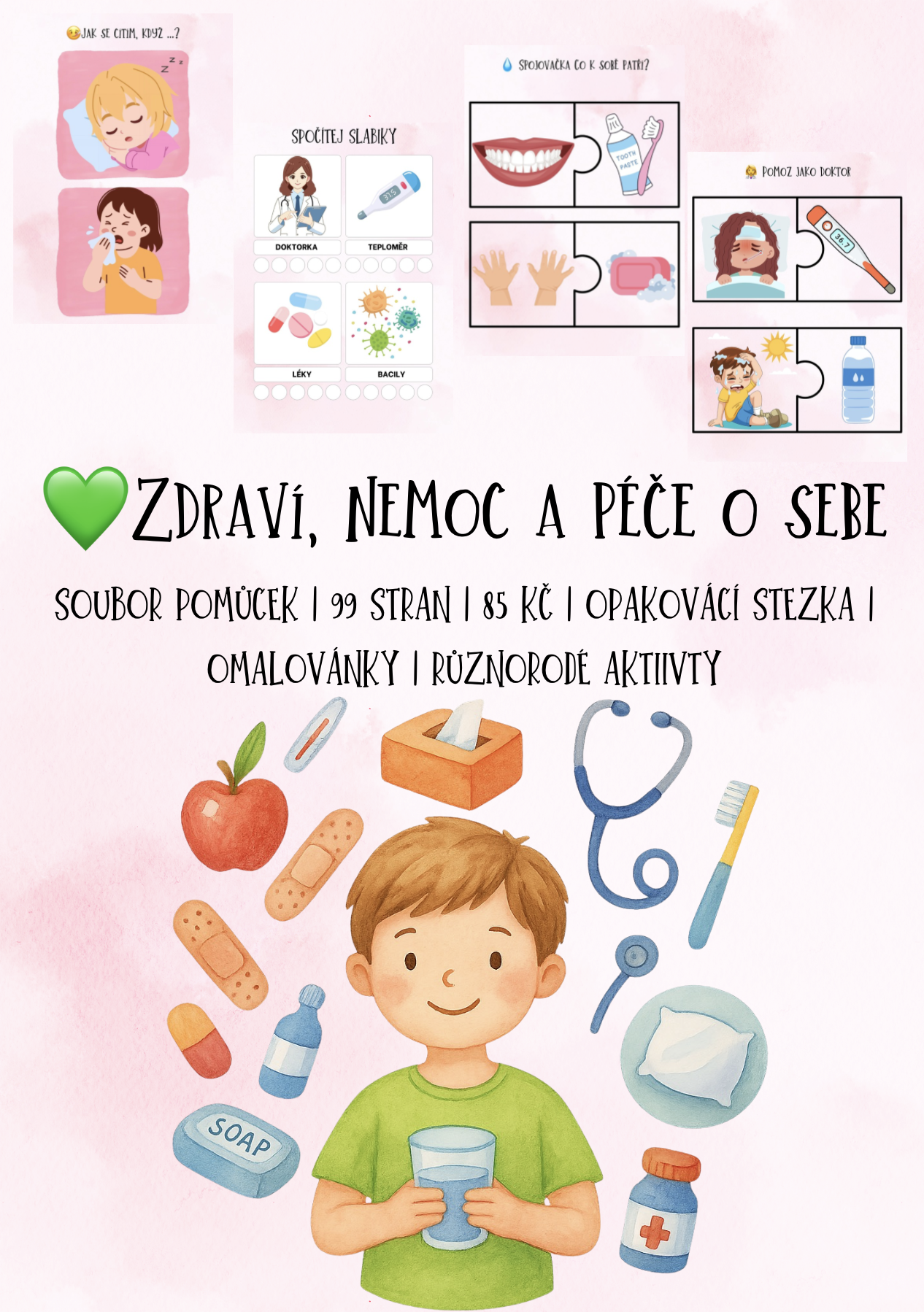 💡 Ideální pro práci v MŠ – jednotlivě i jako ucelený tematický blok o zdraví, nemoci a hygieně.