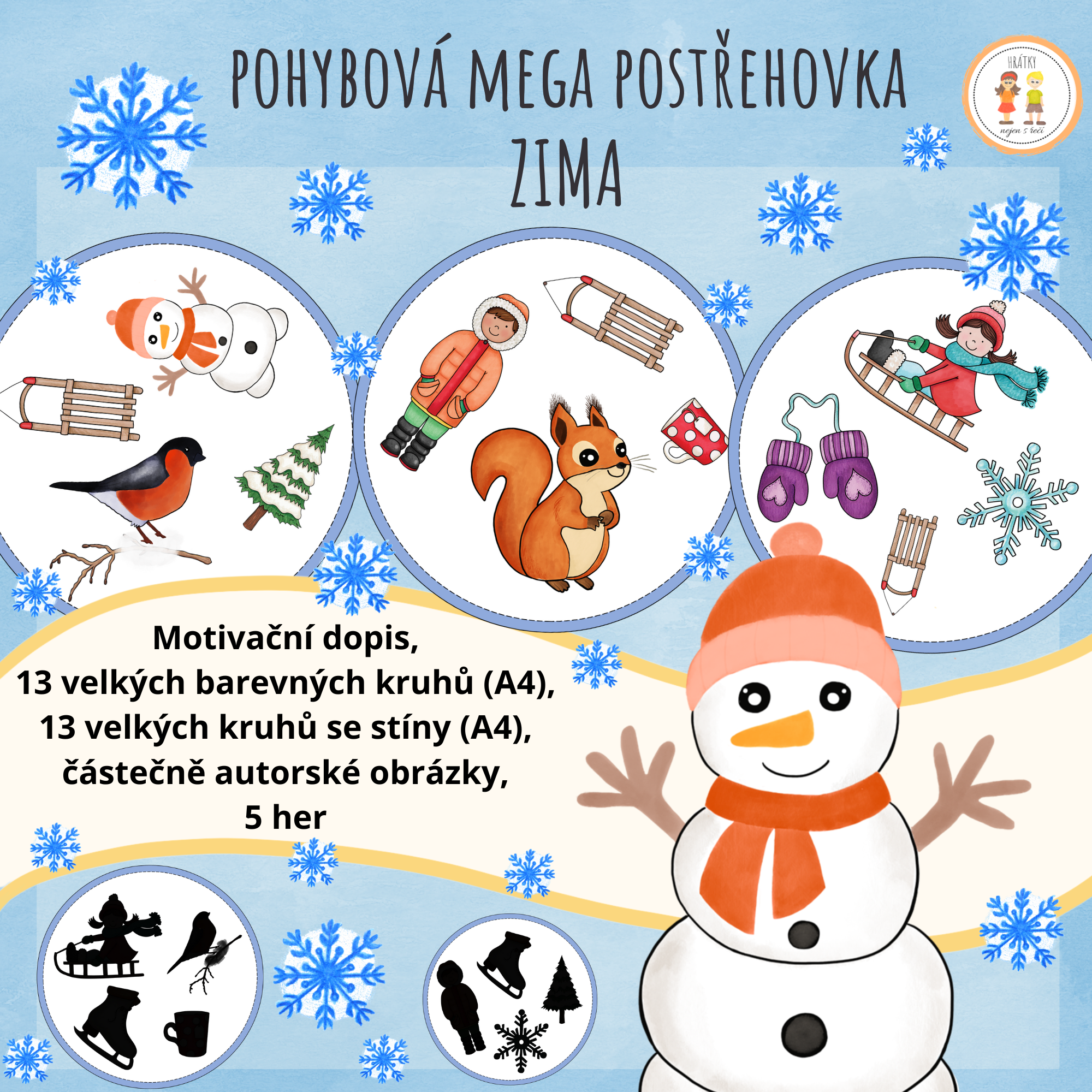 já jsem sněhulák Bílouš a mám pro vás zimní výzvu! Kdo dojde po cestičce plné obrázků až do konce? Dokážete najít dva stejné obrázky, pojmenovat je a posunout se blíž k cíli? Ano?