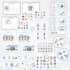 - Skládačky a přiřazování dvou polovin obrázků - 16 symbolů/motivů. Děti skládají rozstřižené obrázky buď podle přiložené černobílé nebo barevné předlohy, případně pokládají rozstřižené kartičky přímo na ni.