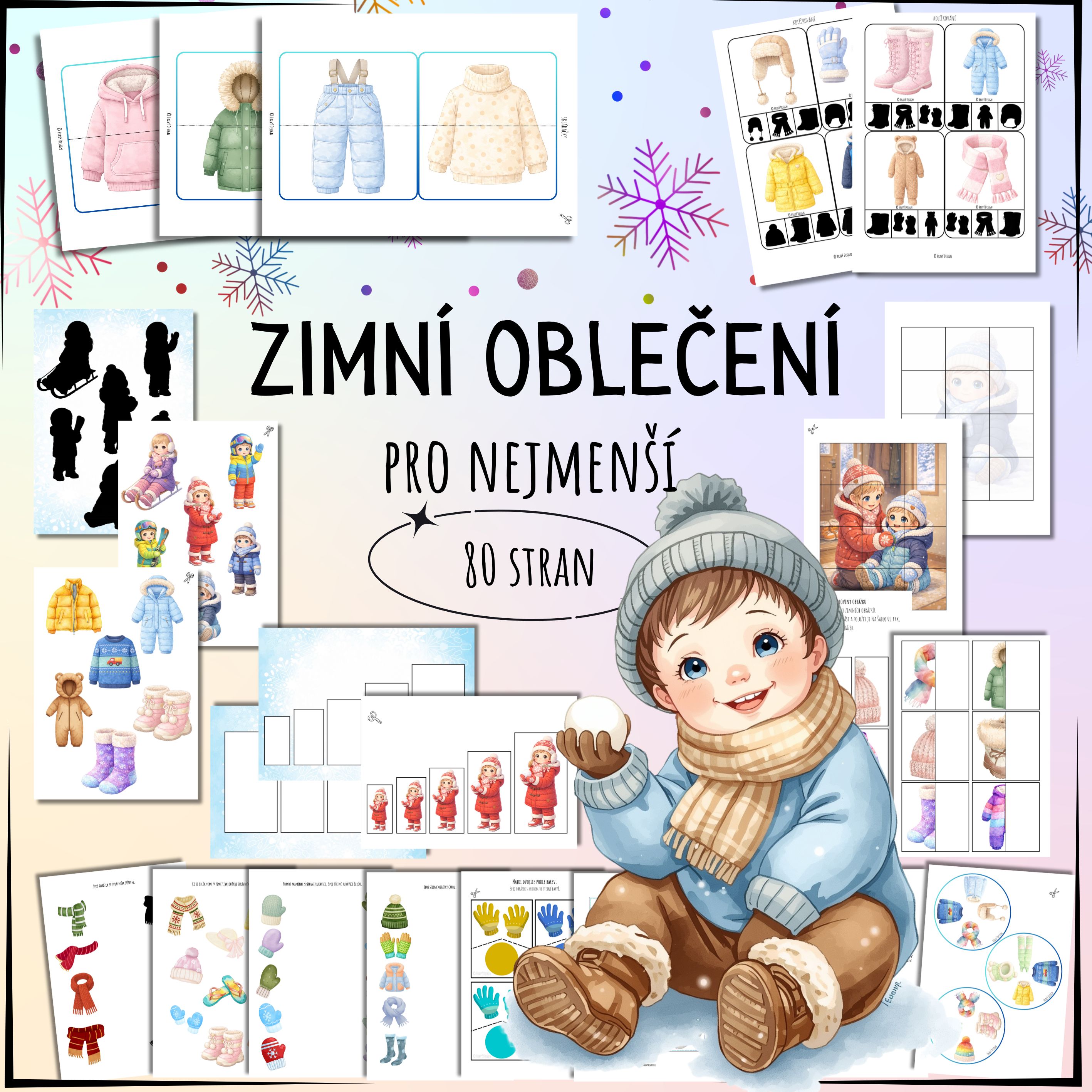 Soubor jednoduchých her a pracovních listů na téma zimní oblečení, určený pro malé děti. Aktivity podporují samostatnou práci, pozorování a základní třídění prostřednictvím hravých úkolů s obrázky.