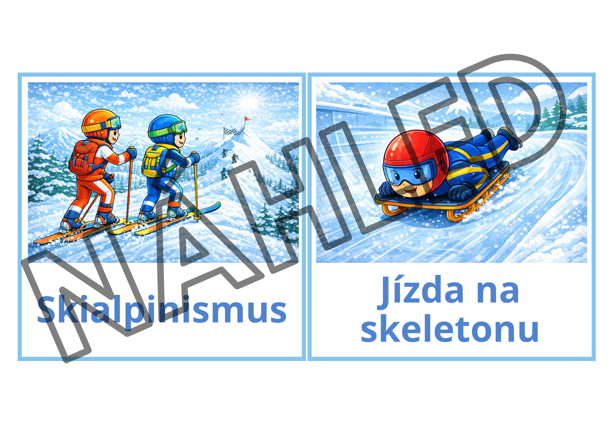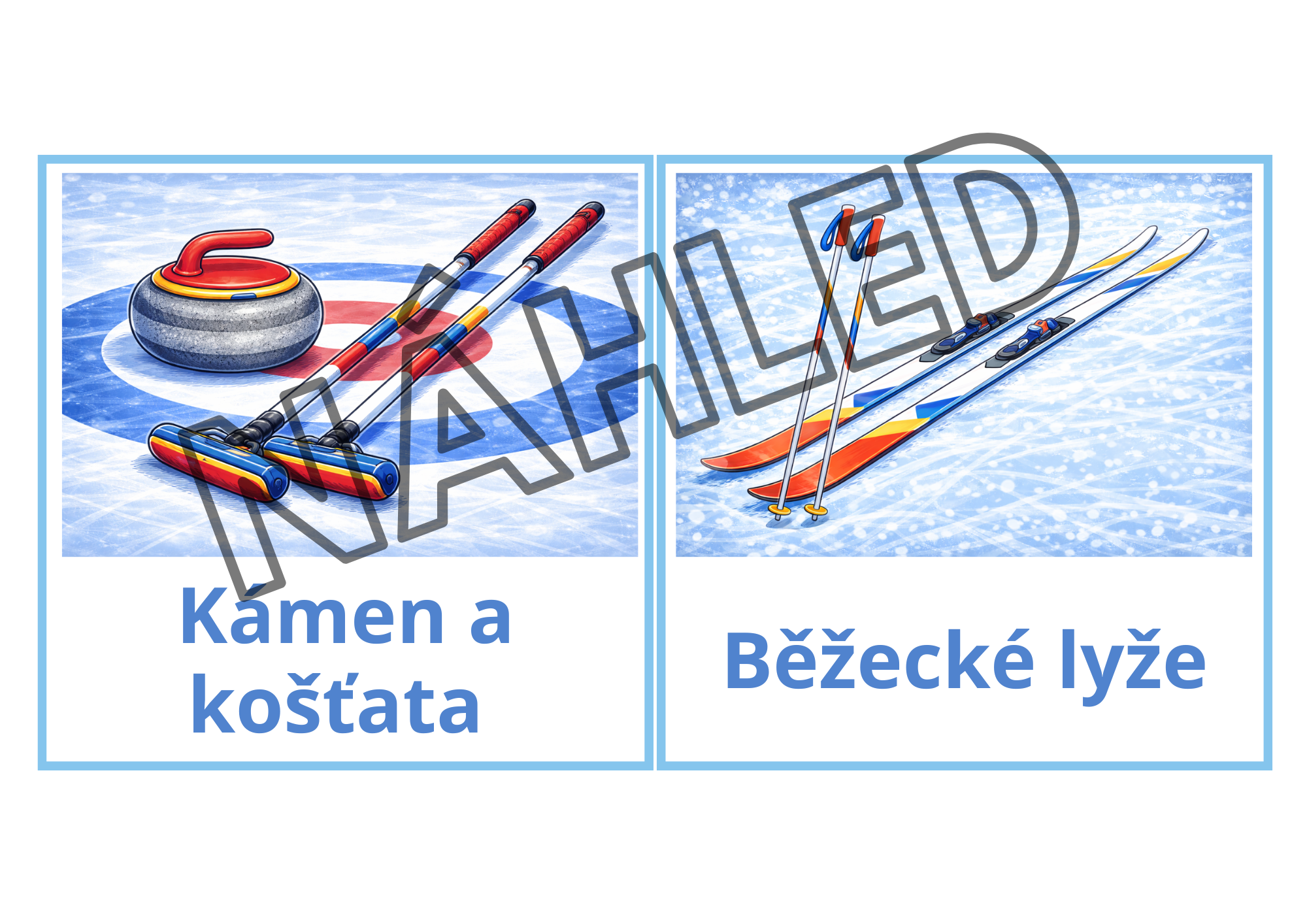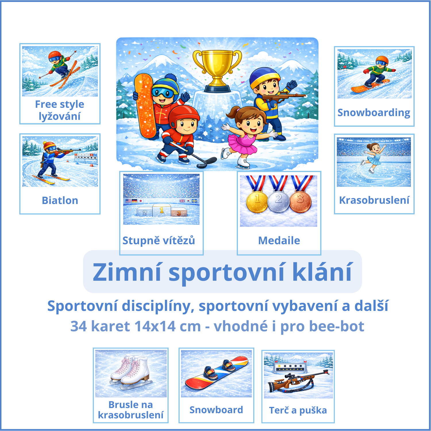 Soubor je určen pro děti předškolního a mladšího školního věku. Obsahuje 34 karet o rozměru 14x14 cm s obrázky a popisy zimních sportovních disciplín, sportovního vybavení a všeho, co k soutěžení patří.