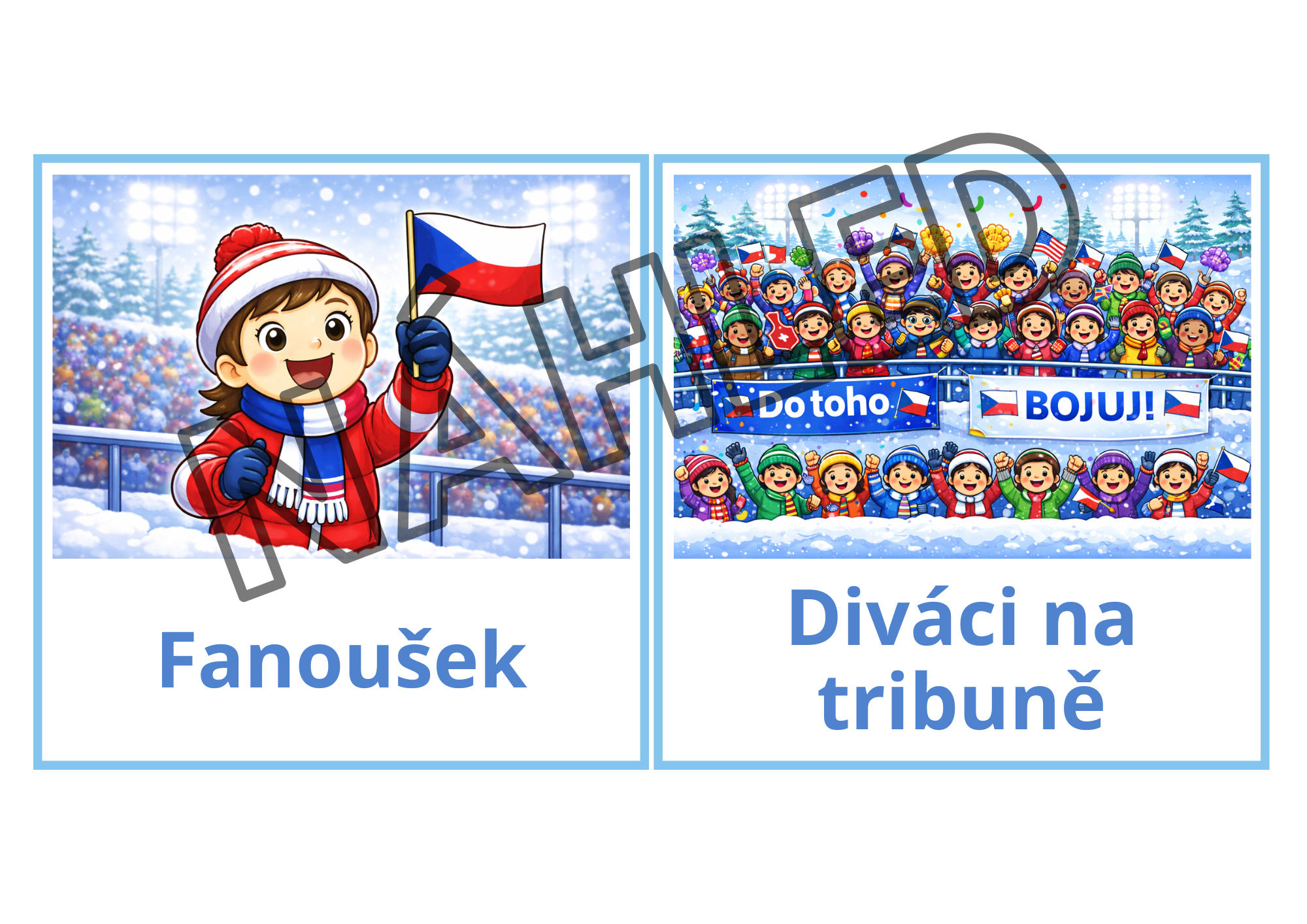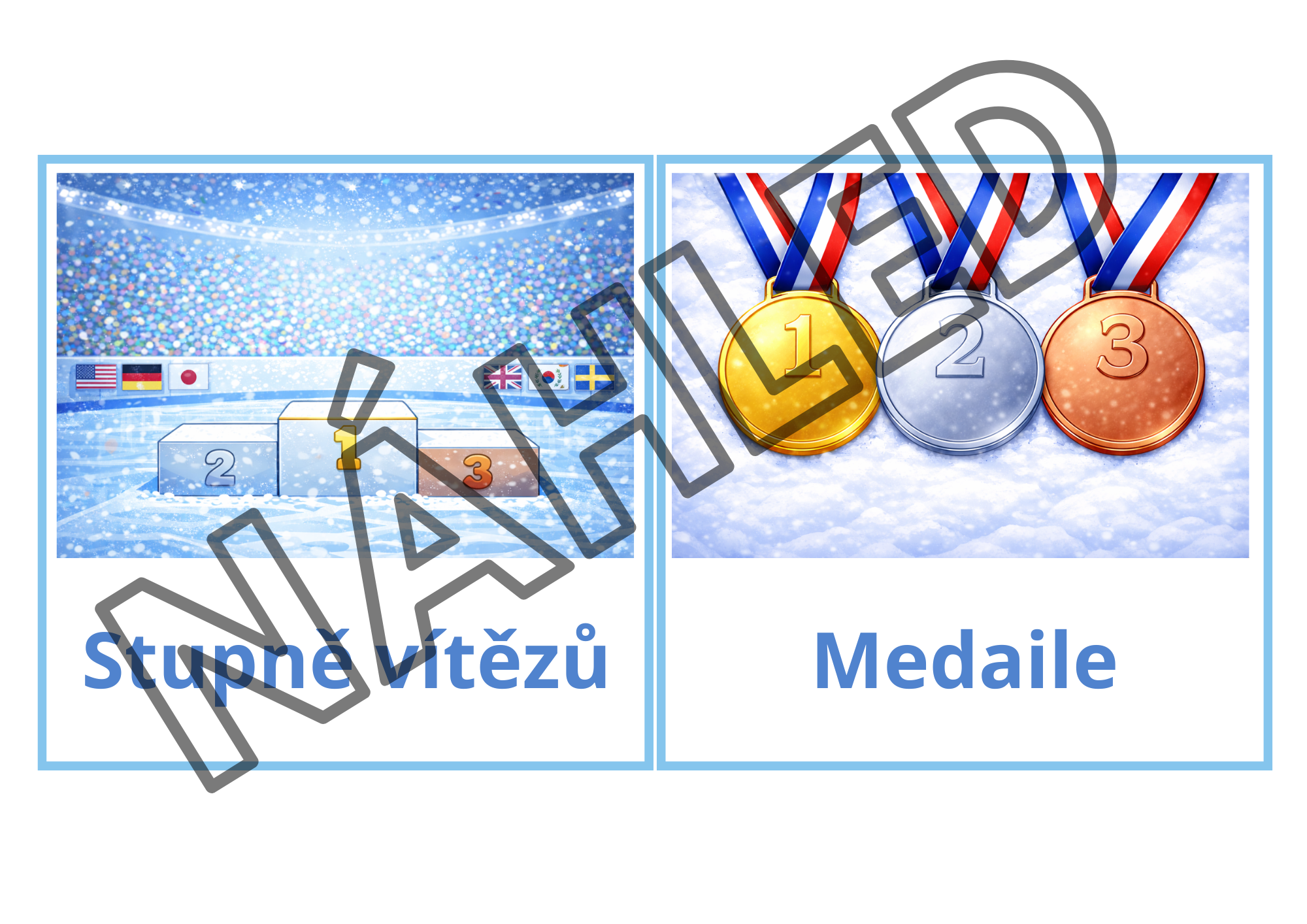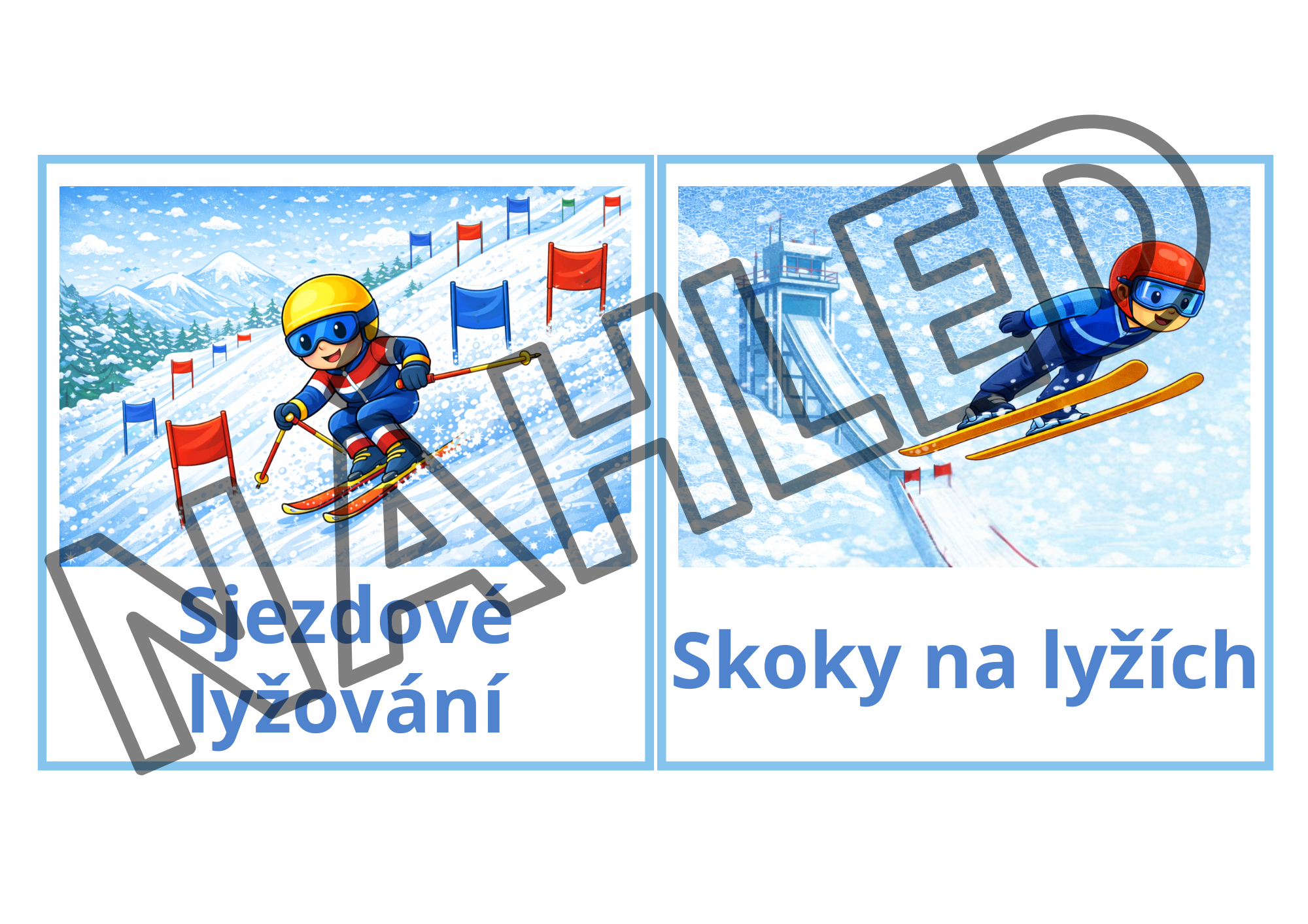Soubor je určen pro děti předškolního a mladšího školního věku. Obsahuje 34 karet o rozměru 14x14 cm s obrázky a popisy zimních sportovních disciplín, sportovního vybavení a všeho, co k soutěžení patří.