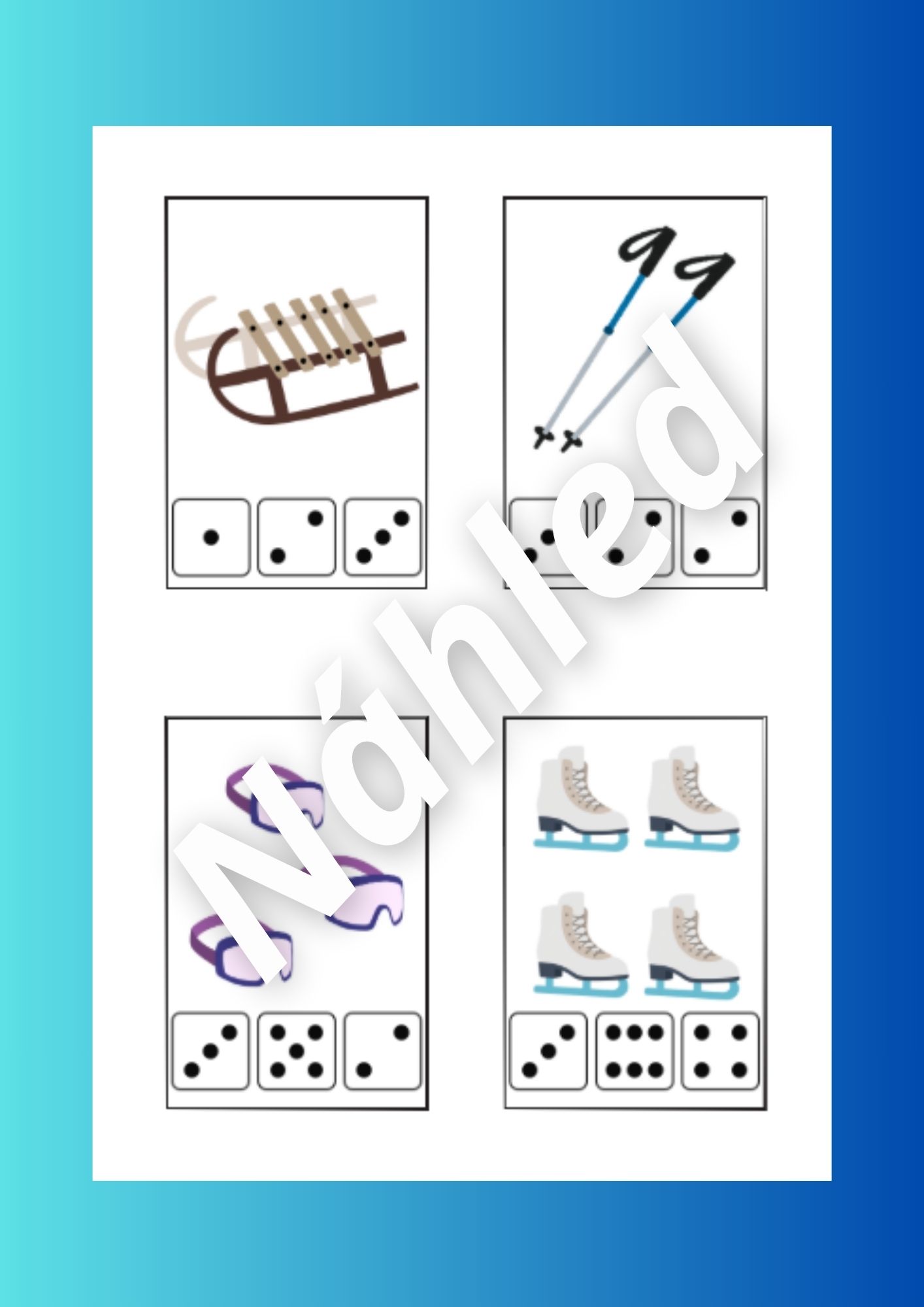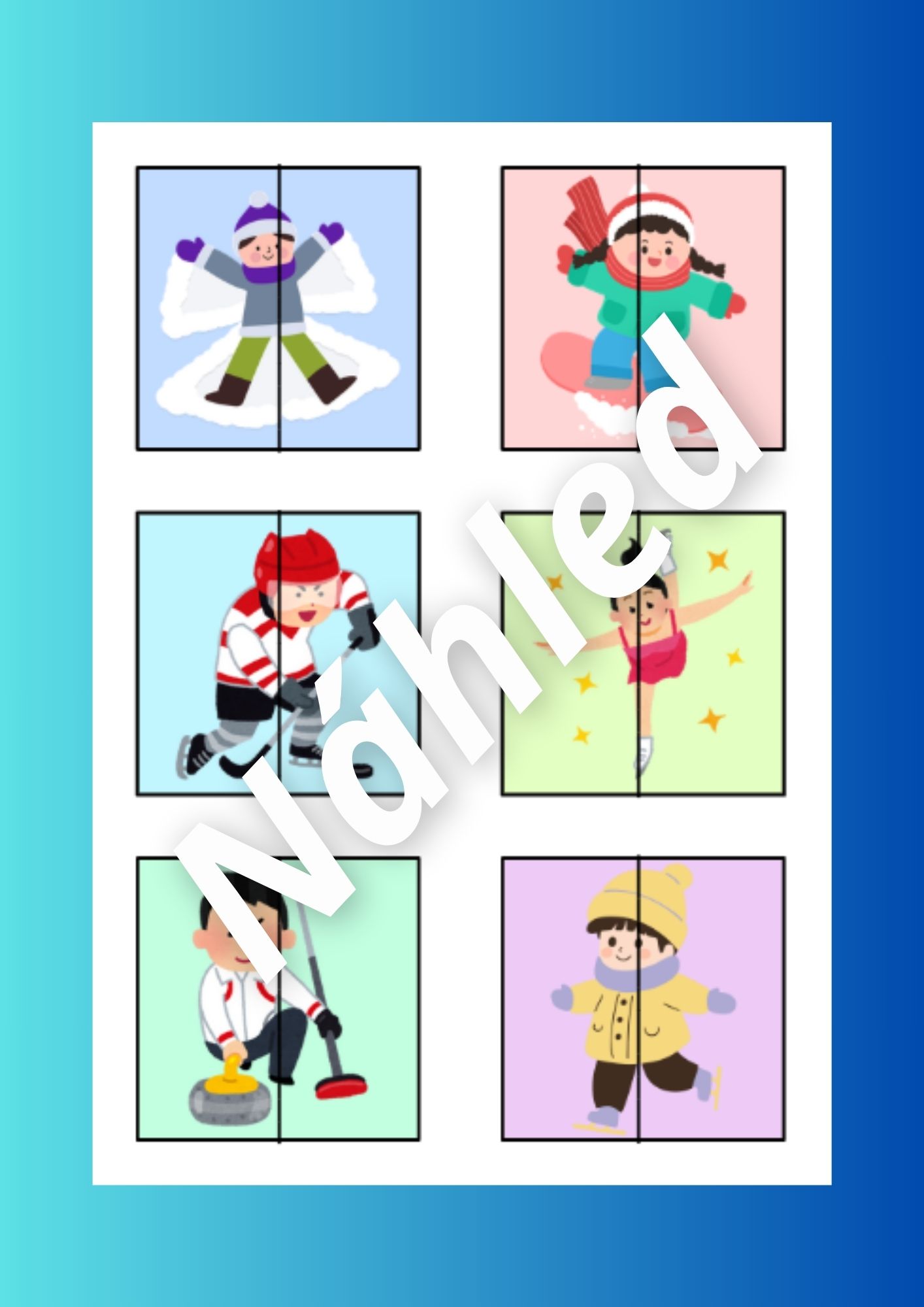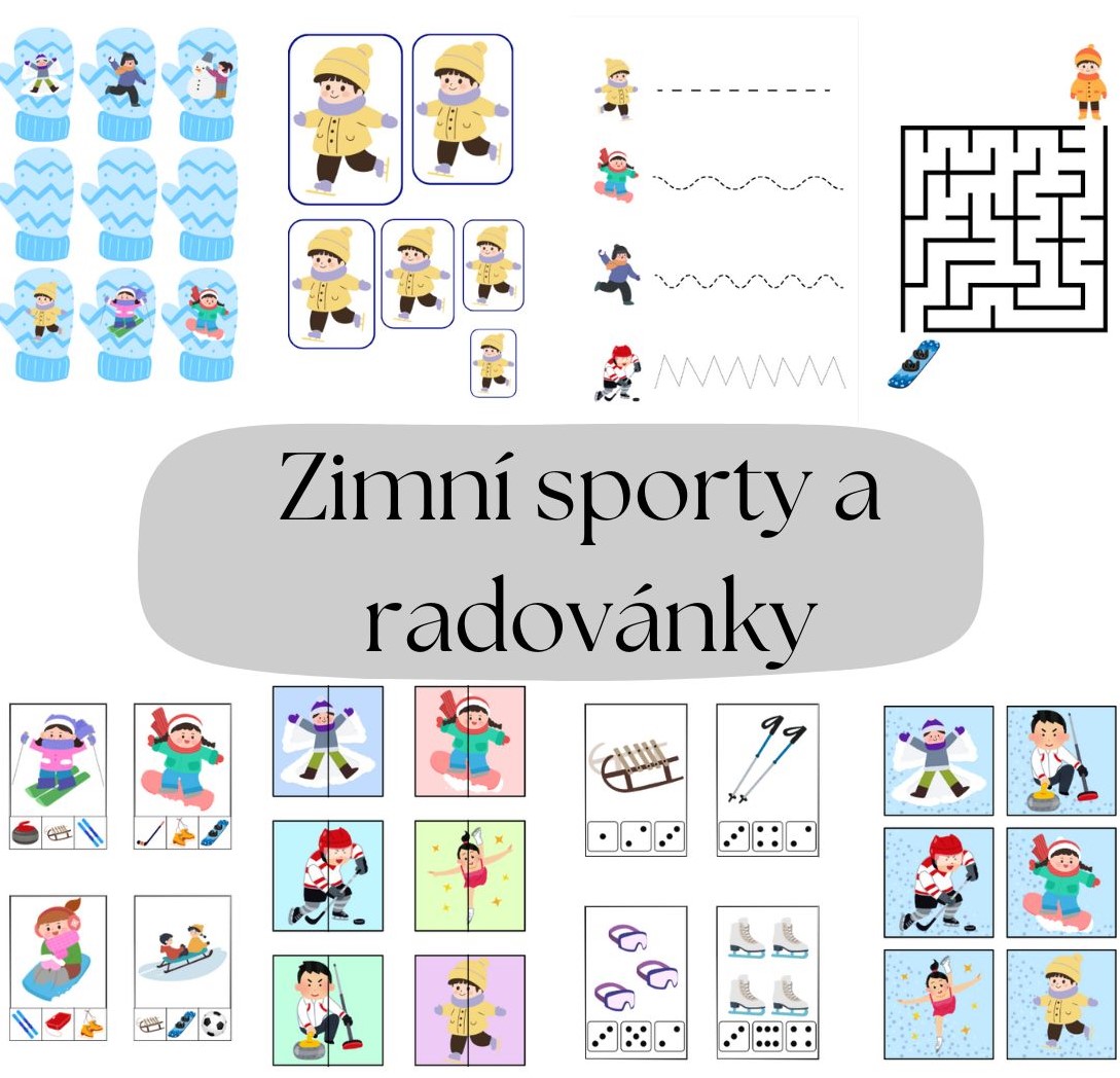 Tento vzdělávací materiál je zaměřen na zimní sporty a radovánky. Aktivity podporují rozvoj slovní zásoby, zrakového vnímání, logického myšlení, jemné motoriky i předmatematických dovedností.