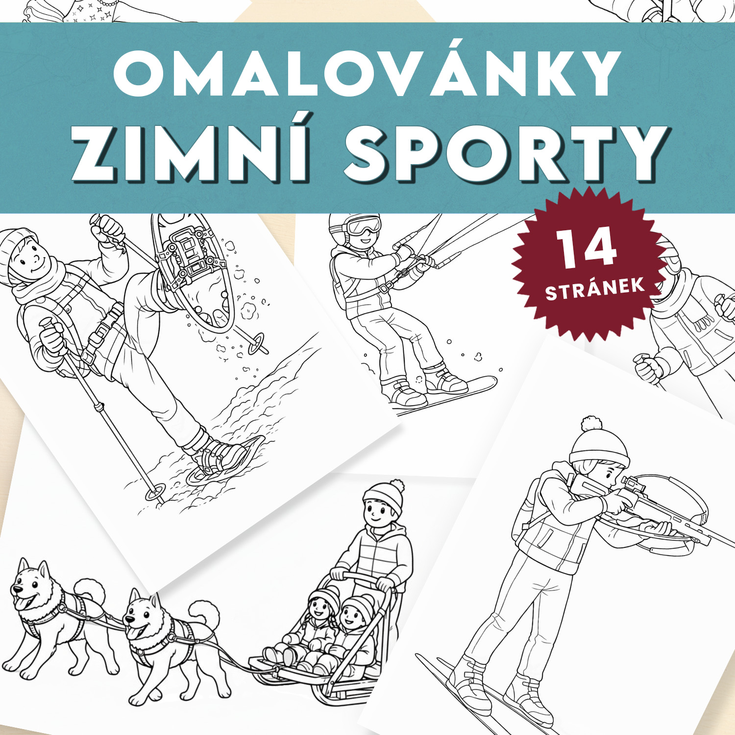 Omalovánky Zimní sporty – sada 14 listů (PDF)