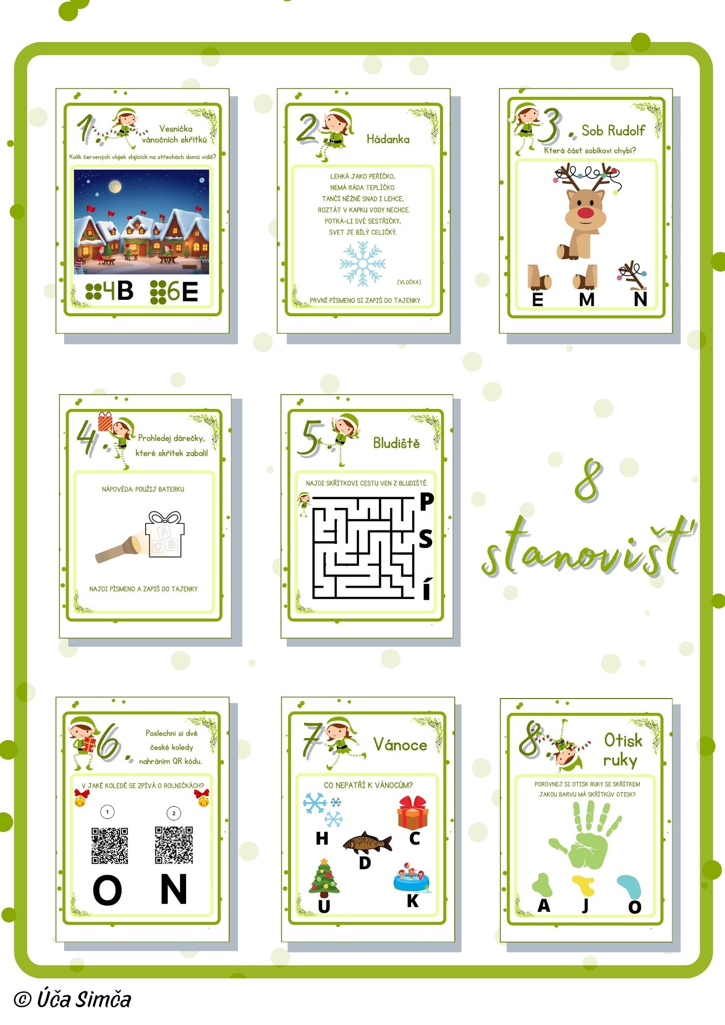 Pokud se chcete s dětmi naladit na tu pravou vánoční atmosféru, tahle bojovka je ideální start. Čeká je osm stanovišť plných zábavných úkolů, které je provedou celou trasou až k tajemné záhadě. Na každém bodě získají jedno písmeno a krok za krokem tak odhalí skryté jméno vánočního skřítka.